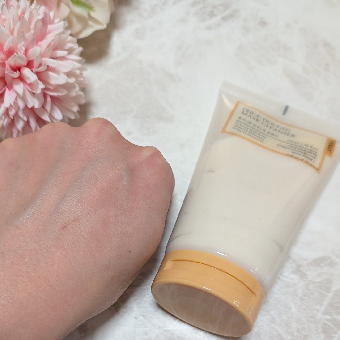 ビタミンCやCICA・クレイも配合されているのが嬉しいなと思います😁 手に出してみると白色でクリーム状のテクスチャーです。 泡立てネットで水分を少な目にして泡立てると泡立ちもとても良く、しっかりとした泡がもこもこと出来てくれます🎶 泡で洗顔するような感じで、泡が途中でへたったりということもなく気持ちよく洗顔することが出来ます。 泡切れも良く、洗い流した後の肌はスッキリとするのにつっぱり感を感じず、乾燥を感じないのが嬉しいなと思います✨ 初めて使用した際は肌がパッと明るくなるようなトーンアップされたような感じで、毛穴汚れも心なしか軽減したようにも感じました😍 毛穴に効果が期待できそうな成分が入っているのに洗い上がりがつっぱらないのがとても気に入りました😊