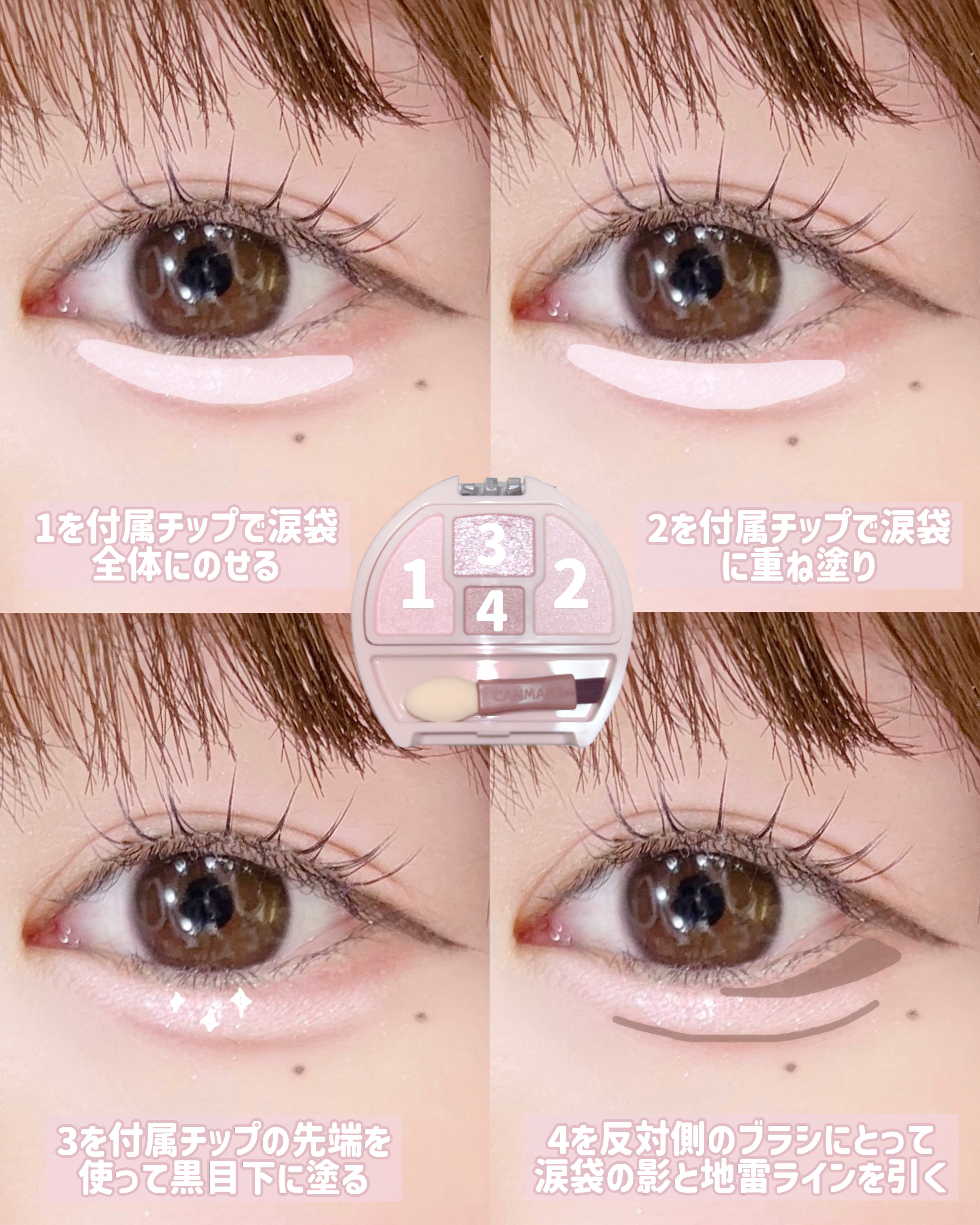- 10月上旬よりプラザにて先行発売中 もーっとぷっくり!!* マット・パール・ラメ入りで3パターンの涙袋が作れる 涙袋用アイシャドウパレット *メイクアップ効果による 涙袋はとにかく盛りたい! 既存のプランぷくコーデアイズじゃ、もの足りない方へオススメ! より、ぷっくりな涙袋が作れるNeoタイプが登場しました。 涙袋用に3色、涙袋の影用に1色がセットされた 涙袋用のアイシャドウパレットです。 既存のプランぷくコーデアイズと比較して… マットは、密着力・発色UP パールは、大きいパールの配合量がUP ラメは、大きい白ラメの配合量がUP 血色影は、影感強めになっています♪