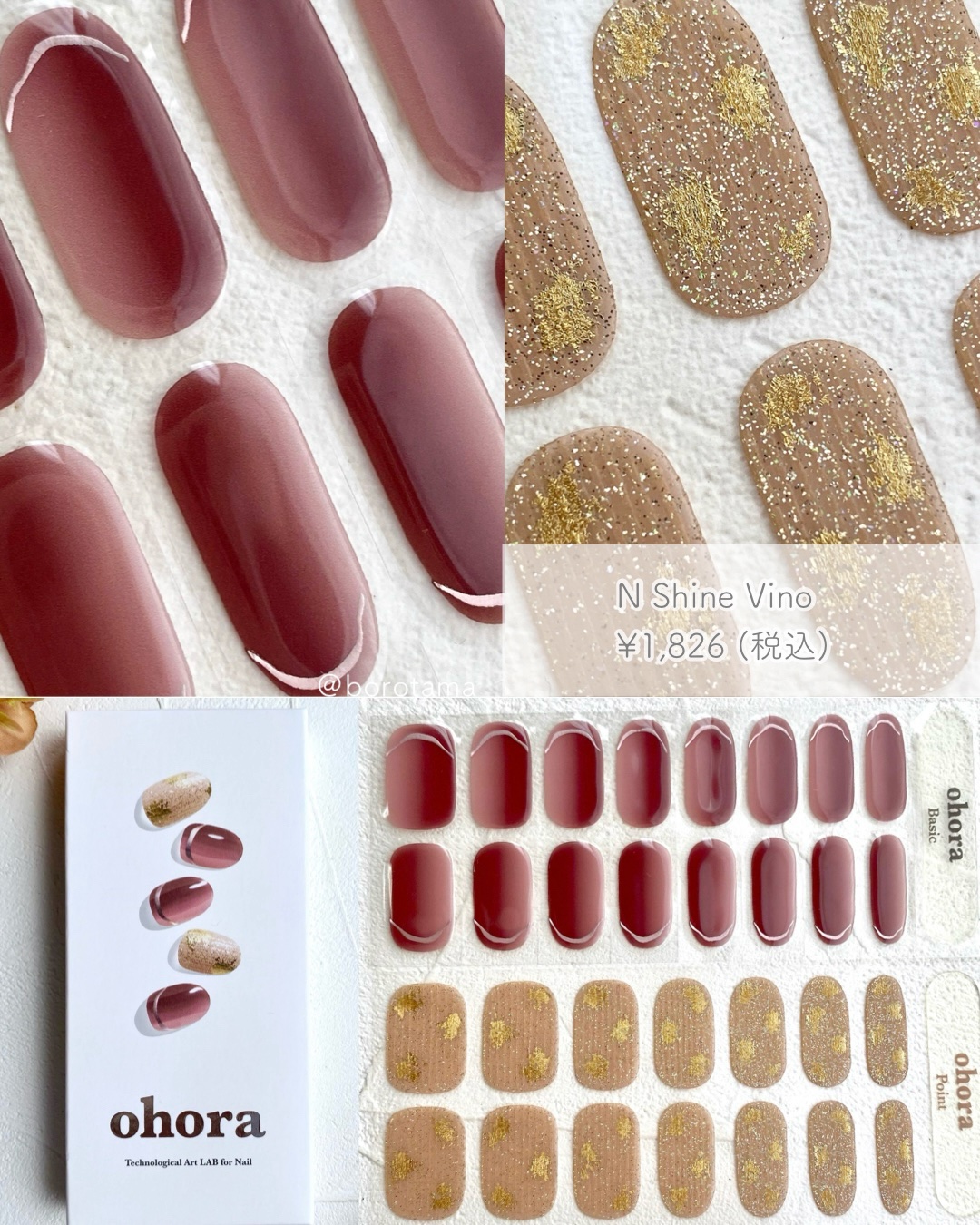 私が今使ってるのはレッドワイン×ゴールドのデザイン💅大人可愛くて華やかで、「え?これシールなの?」って驚かれました♡ツルツル感とほどよい厚みで、まるで本物のジェルネイルみたい。ohoraは〝セミキュアジェル〟という独自技術で作られていて、液状...
