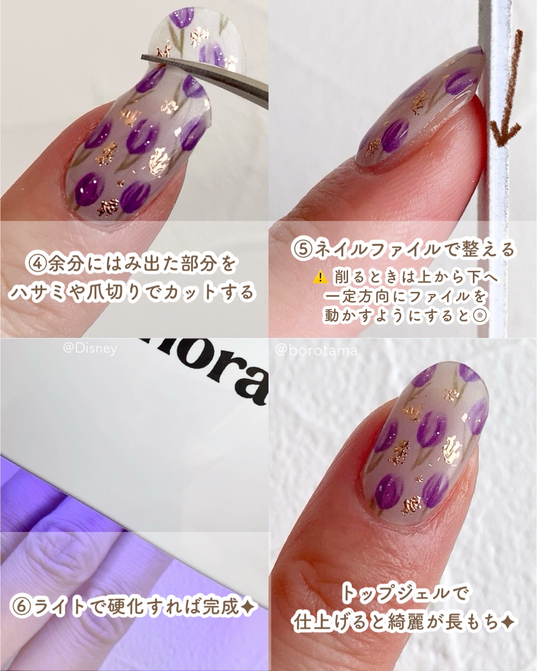 今回は気になってたSNS広告動画で見たやり方でやってみました。ohoraオホーラNShyRose説明書には、シールを爪に貼って、余分なところをやすりで削ぎ落としてからランプで硬化、なんですが、広告動画だと、長いまま硬化して爪切りで切って...