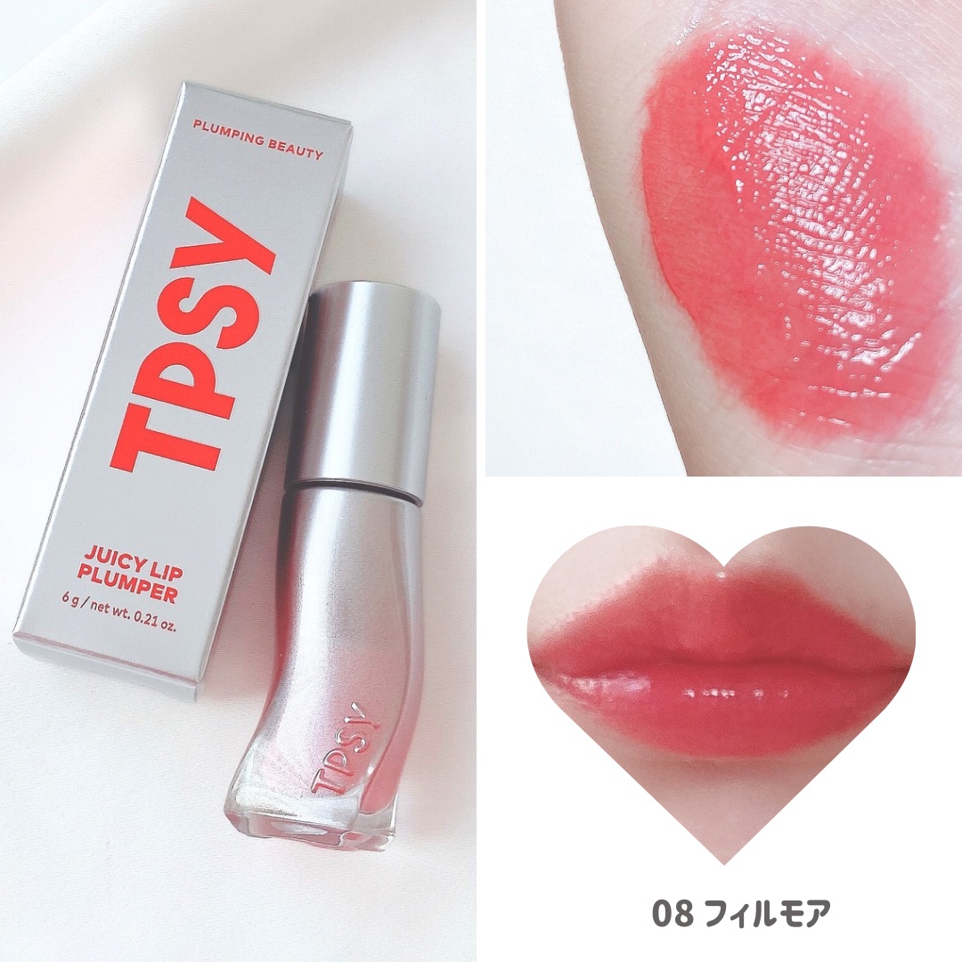TPSY◻︎ジューシーリッププランパーツヤツヤのぷっくり唇に♡1本でティント×グロス×プランプが叶うよ💭じゅわっと染まるティント処方+ツヤ感で、時間が経っても内側からにじむ血色感☺️高発色なのに透明感のある発色なのも可愛い🤍水分ベースで保湿感...
