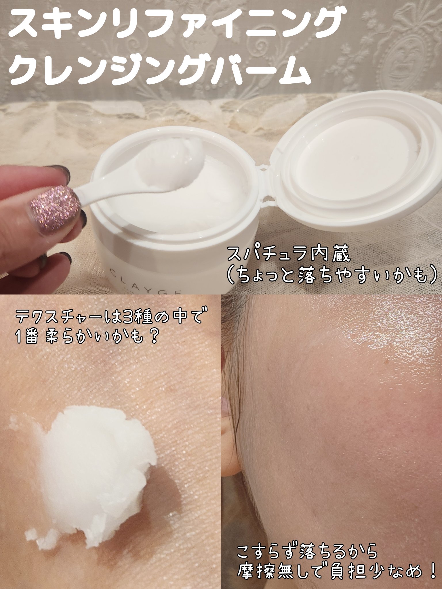 クレージュさんから「モイスチャライジングクレンジングバーム」「ポアスムージングクレンジングバームブラック」「スキンリファイニングクレンジングバーム」3点提供いただき使ってみました。LIPSでも人気のCLAYGEクレンジングバーム。じんわり溶け...