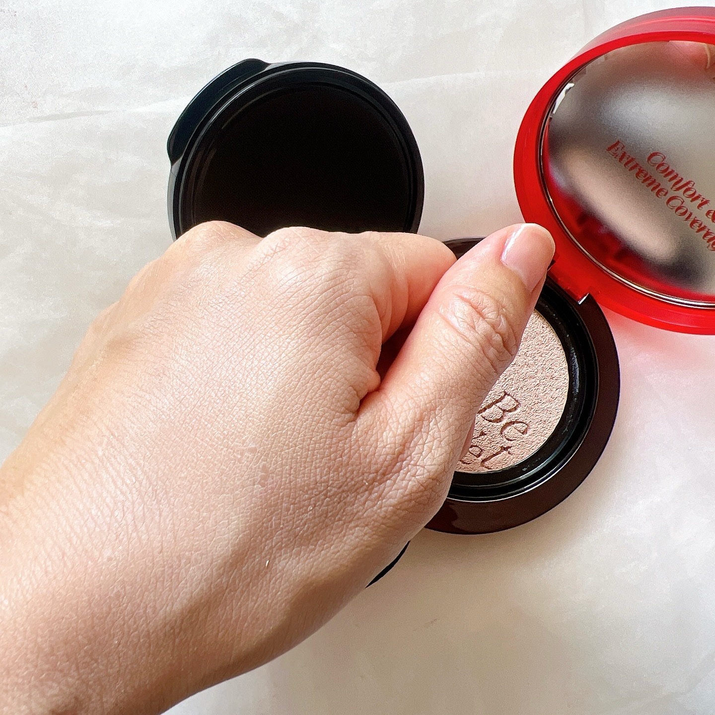 - リニューアル発売 ① 100時間崩れず持続する超密着エクストリームカバー アモーレパシフィックの特許技術*を適用したトリプルレイヤーフィルムフォーマーがメイクを完璧にロック。 NMFカバーパウダー*が隙間なく欠点を均一かつ完璧にカバーし、100時間持続メイクを実現するエクストリームカバークッション * 特許出願番号 : 10-2024-0053975 *アミノ酸誘導体 (NATURAL MOISTURIZING FACTOR)でコーティングしたカバーパウダー ② 不快感のない超軽量テクスチャー &きれいなカラーが続きダークニングの心配ZERO 従来*に比べて40%軽くなったパウダーが、極限まで薄く不快感を感じずにカバーするテクスチャーを実現 オイルによるカラーの影響を最小限に抑え、ダークニングの心配なく長持ちするカラーをキープ ③ 乾燥しないコンフォートベルベット 従来*に比べて2倍量配合した低分子ヒアルロン酸で肌の中の水分層を満たし、弾力ペプチドと保湿、バリア強化効能のアルギニンを配合して乾燥感のない快適なコンフォートベルベットテクスチャーを実現 *ビーベルベットカバークッションニュークラス ④ ディテールにこだわったエクストリームクリーン処方 ビーガン認証はもちろん、皮膚刺激テスト、ブルーライトカットテストとファヘFREE(20種類の注意成分)、セフォラクリーン(Phase4)レベルをクリアしたエクストリームクリーン処方