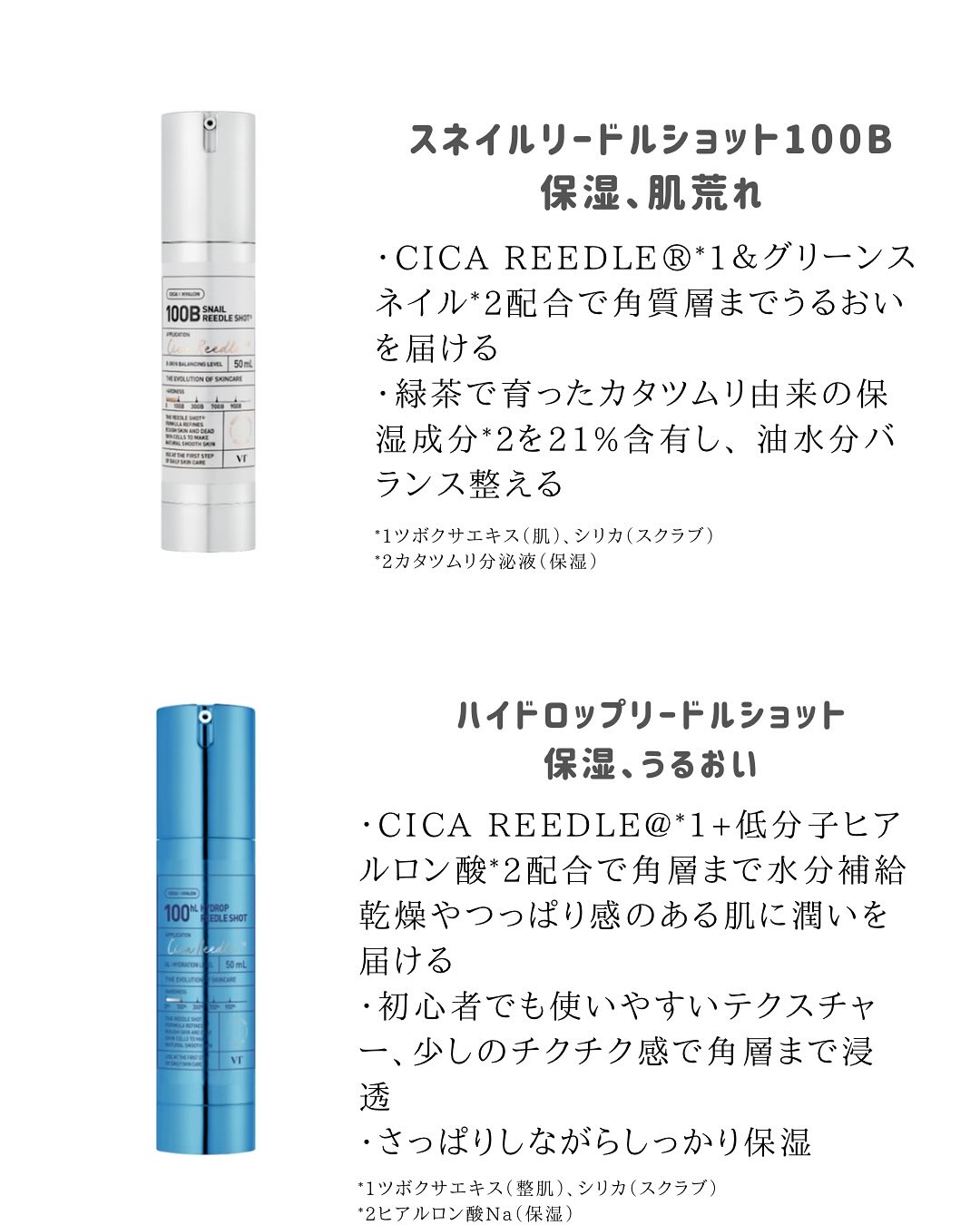 - 何を塗っても乾燥する肌、つっぱる肌。スキンケアの角層への浸透力は高めたいけどリードルショットに慣れない方へ。 ハイドロップリードルショットラインは、肌角層へ水分を届けるCICA REEDLE™*が配合されているためチクチク感が初めてのリードルショット初心者にもオススメ。 ハイドロップリードルショット100hLは水分が肌ではじけるような少しのチクチクした使用感で爽やかな潤いを与えます。 ■このような方へおすすめ 何を塗っても乾燥が気になる、かさかさした肌インナードライ肌の方 しっかり保湿したいけど、べたつかずさっぱりした使用感をお求めの方 お家でお手軽にホームエステケアを始めたい方 スキンケアの角層への浸透を高めたいリードルショット初心者の方 * ツボクサエキス(整肌)、シリカ(スクラブ)