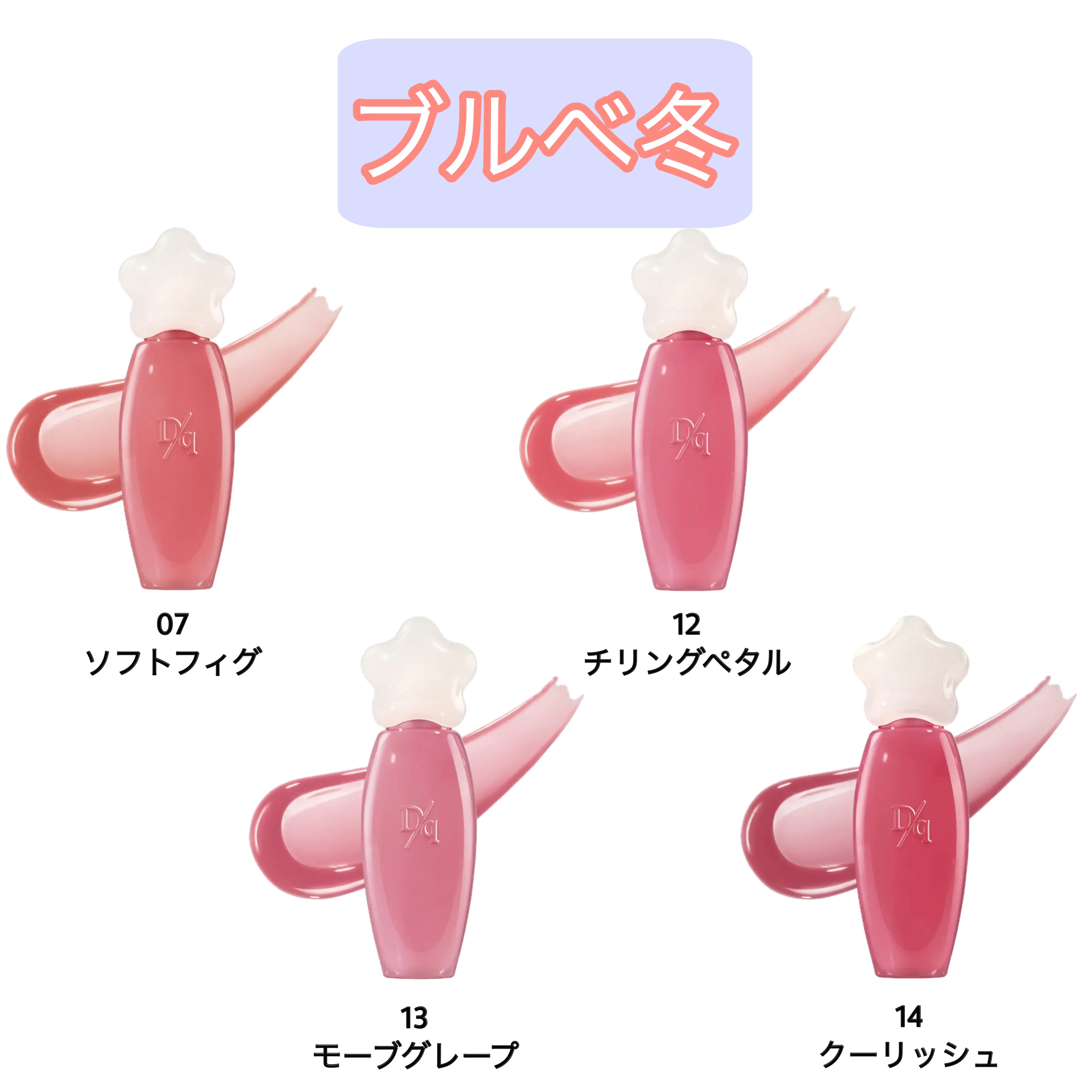 - <01 コーラルジュース> ハイドロジェネイテッドポリイソブテン、ジアイソステアリルマレート、カプリーリル/カプリルトリグリセリド、ポリグリセリル-2トライイソステアレート、ラズベリーシードオイル、トコフェリルアセテート、プロパンジオールエステル、ヒマワリ種子油、オリーブ果実油、ホホバ種子油、ブドウ種子油、蓮の花エキス、ヤグルマギク花エキス、セイヨウニワトコ花エキス、マグワ根皮エキス、デキストリンパルミテート、シリカジメチルシリレート、ジメチルシリル化シリカ、ポリグリセリル-2トリイソステアレート、精製水、グリセリン、スクワラン、ジパルミトイルヒドロキシプロリン、テトラヒドロジフェルロイルメタン、ポタシウムベンゾエート、香料、リナロール、酸化チタン (CI 77891)、黄色酸化鉄 (CI 19140)、赤色酸化鉄 (CI 77492)、赤色202号 (CI 15850)、赤色104号の(1) (CI 45410)、黄色5号 (CI 15985) <02 ベアポメロ> ハイドロジェネイテッドポリイソブテン、ジアイソステアリルマレート、カプリーリル/カプリルトリグリセリド、ポリグリセリル-2トライイソステアレート、ラズベリーシードオイル、トコフェリルアセテート、プロパンジオールエステル、ヒマワリ種子油、オリーブ果実油、ホホバ種子油、ブドウ種子油、蓮の花エキス、ヤグルマギク花エキス、セイヨウニワトコ花エキス、マグワ根皮エキス、デキストリンパルミテート、シリカジメチルシリレート、ジメチルシリル化シリカ、ポリグリセリル-2トリイソステアレート、精製水、グリセリン、スクワラン、ジパルミトイルヒドロキシプロリン、テトラヒドロジフェルロイルメタン、ポタシウムベンゾエート、香料、リナロール、酸化チタン (CI 77891)、黄色酸化鉄 (CI 19140)、赤色酸化鉄 (CI 77492)、赤色202号 (CI 15850)、赤色104号の(1) (CI 45410)、黄色5号 (CI 15985) <03 ハニーピーチ> ハイドロジェネイテッドポリイソブテン、ジアイソステアリルマレート、カプリーリル/カプリルトリグリセリド、ポリグリセリル-2トライイソステアレート、ラズベリーシードオイル、トコフェリルアセテート、プロパンジオールエステル、ヒマワリ種子油、オリーブ果実油、ホホバ種子油、ブドウ種子油、蓮の花エキス、ヤグルマギク花エキス、セイヨウニワトコ花エキス、マグワ根皮エキス、デキストリンパルミテート、シリカジメチルシリレート、ジメチルシリル化シリカ、ポリグリセリル-2トリイソステアレート、精製水、グリセリン、スクワラン、ジパルミトイルヒドロキシプロリン、テトラヒドロジフェルロイルメタン、ポタシウムベンゾエート、香料、リナロール、酸化チタン (CI 77891)、黄色酸化鉄 (CI 19140)、赤色酸化鉄 (CI 77492)、赤色202号 (CI 15850)、赤色104号の(1) (CI 45410)、黄色5号 (CI 15985) <04 アップルバイト> ハイドロジェネイテッドポリイソブテン、ジアイソステアリルマレート、カプリーリル/カプリルトリグリセリド、ポリグリセリル-2トライイソステアレート、ラズベリーシードオイル、トコフェリルアセテート、プロパンジオールエステル、ヒマワリ種子油、オリーブ果実油、ホホバ種子油、ブドウ種子油、蓮の花エキス、ヤグルマギク花エキス、セイヨウニワトコ花エキス、マグワ根皮エキス、デキストリンパルミテート、シリカジメチルシリレート、ジメチルシリル化シリカ、ポリグリセリル-2トリイソステアレート、精製水、グリセリン、スクワラン、ジパルミトイルヒドロキシプロリン、テトラヒドロジフェルロイルメタン、ポタシウムベンゾエート、香料、リナロール、酸化チタン (CI 77891)、黄色酸化鉄 (CI 19140)、赤色酸化鉄 (CI 77492)、赤色202号 (CI 15850)、赤色104号の(1) (CI 45410)、黄色5号 (CI 15985) <05 キャラメルドリズル> ハイドロジェネイテッドポリイソブテン、ジアイソステアリルマレート、カプリーリル/カプリルトリグリセリド、ポリグリセリル-2トライイソステアレート、ラズベリーシードオイル、トコフェリルアセテート、プロパンジオールエステル、ヒマワリ種子油、オリーブ果実油、ホホバ種子油、ブドウ種子油、蓮の花エキス、ヤグルマギク花エキス、セイヨウニワトコ花エキス、マグワ根皮エキス、デキストリンパルミテート、シリカジメチルシリレート、ジメチルシリル化シリカ、ポリグリセリル-2トリイソステアレート、精製水、グリセリン、スクワラン、ジパルミトイルヒドロキシプロリン、テトラヒドロジフェルロイルメタン、ポタシウムベンゾエート、香料、リナロール、酸化チタン (CI 77891)、黄色酸化鉄 (CI 19140)、赤色酸化鉄 (CI 77492)、赤色202号 (CI 15850)、赤色104号の(1) (CI 45410)、黄色5号 (CI 15985) <06 フェードローズ> ハイドロジェネイテッドポリイソブテン、ジアイソステアリルマレート、カプリーリル/カプリルトリグリセリド、ポリグリセリル-2トライイソステアレート、ラズベリーシードオイル、トコフェリルアセテート、プロパンジオールエステル、ヒマワリ種子油、オリーブ果実油、ホホバ種子油、ブドウ種子油、