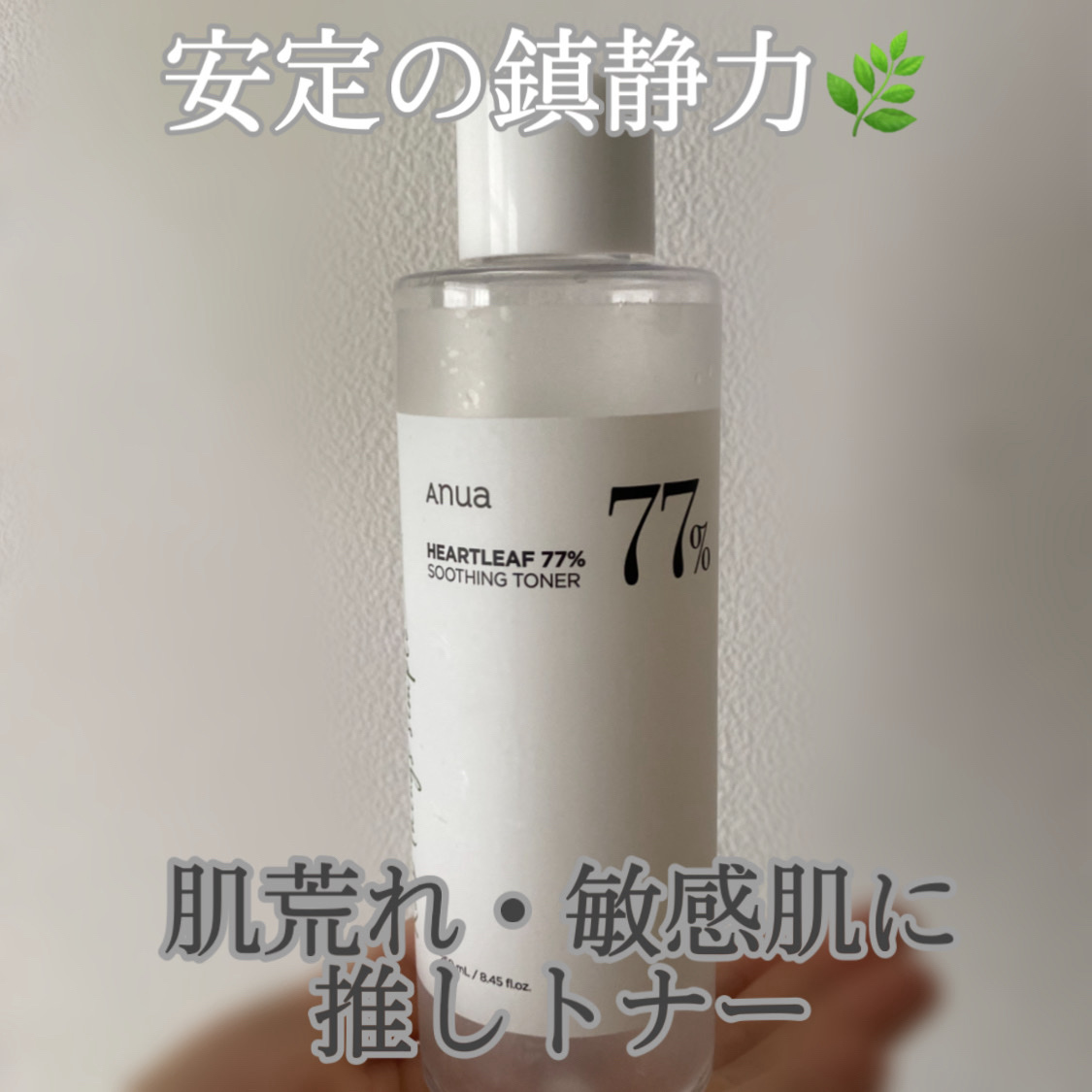 ドクダミエキスを精製水の代わりに77%入れてトラブル鎮静に卓越したトナー。 皮膚刺激テストの結果、「無刺激」判定で敏感肌の方にも安心して使用できます。 水っぽくサラサラとしたテクスチャーで、肌馴染みが良くさっぱりとしています!! 手に出して化粧水として使用したり、コットンにたっぷり染み込ませてパックとして使用するのもおすすめです!😊 ドクダミ成分配合で、肌荒れ時にも使用できて刺激を感じることもなかったです! Anuaのアンプルと一緒に使用すると、より保湿してくれて、お肌を鎮静してくれます!😊
