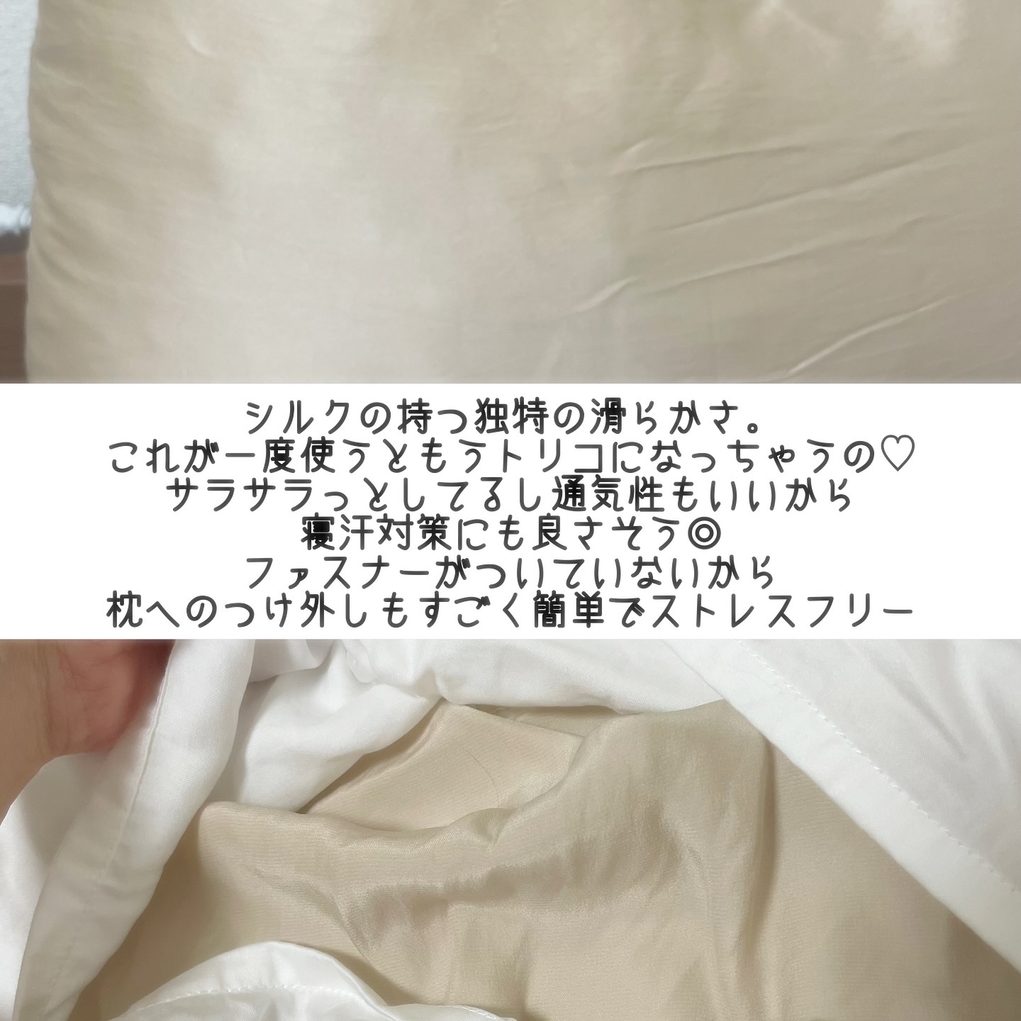 Utukkyシルクまくらカバー使ってみました💕表面:シルク100%裏面:テンセル100%💛今回使ったのはローズゴールドカラー展開も豊富でサイズは2種類あるのでお手持ちの枕や寝具に合うものを選べます✨見て~高級感あふれる光沢!!上質な触感もよい...
