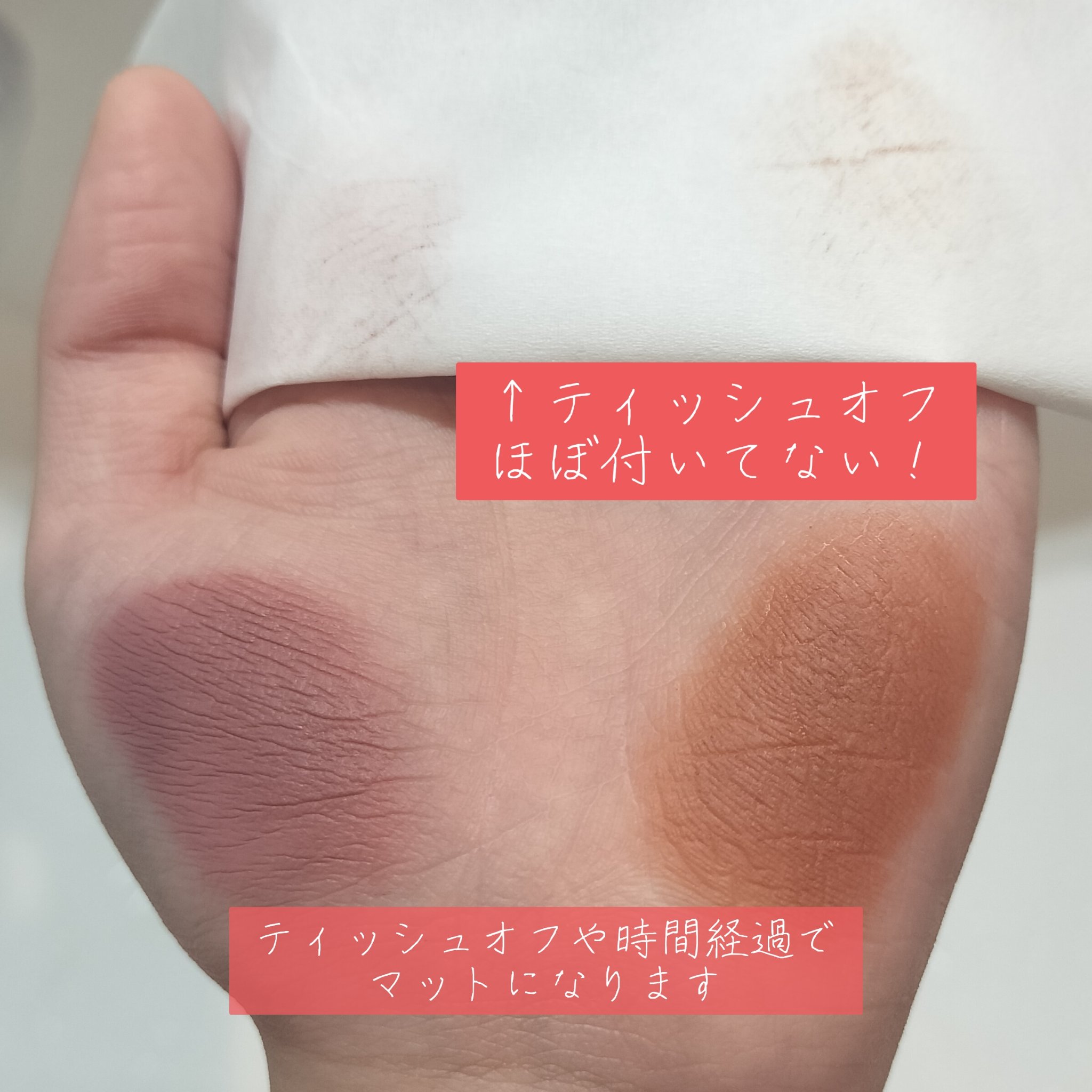| 口紅・グロス・リップライナーランキング第45位 | めちゃくちゃ塗り心地が軽いのに、色のせてすぐティッシュOFFしても色がめっちゃ残る!! | 詳細を見る | |