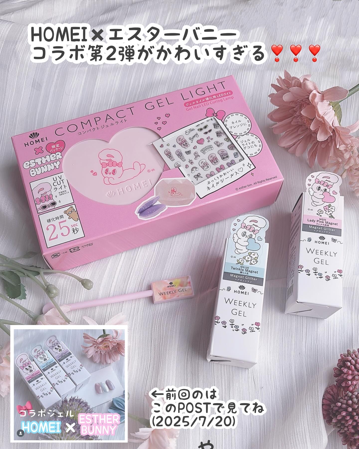 ✍🏻HOMEI🤍HOMEIウィークリージェル💖MG19FlowerPinkMagnet💜MG21LavenderMagnet👛¥1,320エスターバニーコラボ🐰のウィークリージェル💖マグネットジェルがキラッキラでかわいすぎてずっと見つめちゃう...