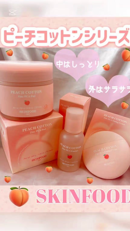 #PRスキンフードのピーチスキンケアライン🤍🍑ピーチコットンジンクPCAパッド洗顔後にサッとふくだけで肌表面すっきり!ハート型が可愛くてパックとしても使える♡モモ果実エキス(※1)配合で余分な皮脂はケアしつつ、しっとりうるおうから毎日手に取り...