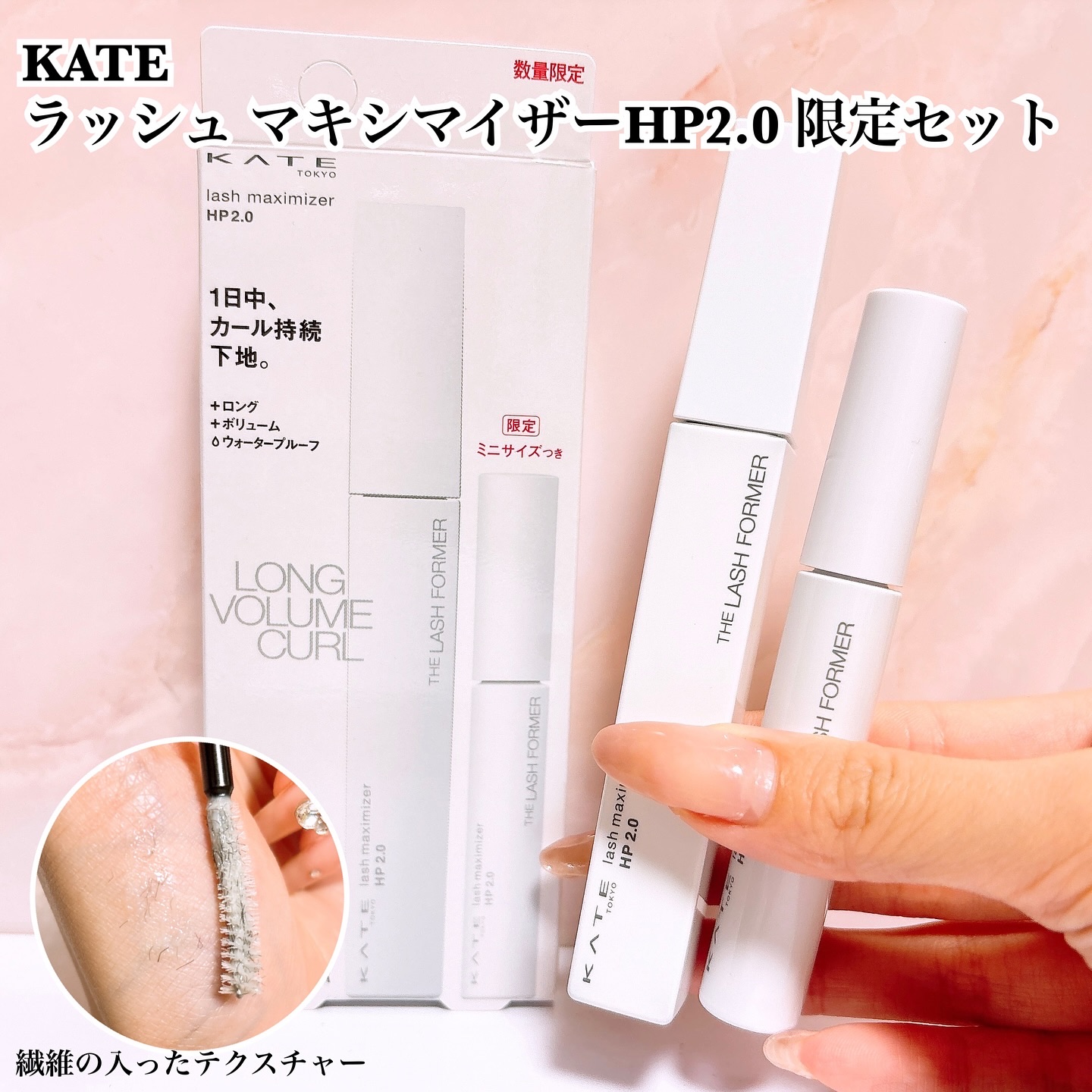 - ロング・ボリューム・カールキープ、全てをゆずらない。 ダマになりにくい爆発級*1に美しいまつ毛へ。 ◆汗・水・湿気に強いウォータープルーフ ◆皮脂に強いオイルプルーフ ◆まつ毛補修成分配合(オリーブオイル) ■ロング&ボリュームUPを叶えるデュアル繊維配合 ■長時間カールキープ カール固定ワックス配合 ダマになりにくいボリュームアップブラシ ■マスカラ液をたっぷり含めるブラシ ■にじみに強いブロックポリマー配合 ■ラッシュマキシマイザーHP2.0 ロングもボリュームもまつ毛全方位盛り 長時間カール持続マスカラ下地 ■カール固定ワックス高配合*2 ■黒い繊維入りの白半透明カラー <ラッシュバースト限定セットⅠ BK-1> ラッシュバーストに、ミニサイズのカール持続マスカラ下地がついた限定セット セット内容: ケイト ラッシュバースト BK-1 7.1g(マスカラ) ケイト ラッシュマキシマイザーHP 2.0 EX-1 4.2g(まつ毛用化粧下地) <ケイト ラッシュバースト限定セットⅡ BR-1/BR-2> ラッシュバーストに自眉の黒をやわらげてふんわり仕上がる脱色級*3 眉マスカラ3DアイブロウカラーZミニサイズがついた限定セット ■ BR-1【ナチュラルブラウン】 BR-2【ライトブラウン】 セット内容: ケイト ラッシュバースト BK-1(マスカラ) 7.1g ケイト 3DアイブロウカラーZ BR-1(眉墨) 3.0g <BK-1(N) ブラック(限定)・BR-1(N) ブラウン(限定)> NANAコラボレーションの限定デザイン *1KATEのロング、ボリューム、カールキープ効果のあるマスカラとの比較 *2ケイト ラッシュマキシマイザーシリーズとして *3脱色したような色合い