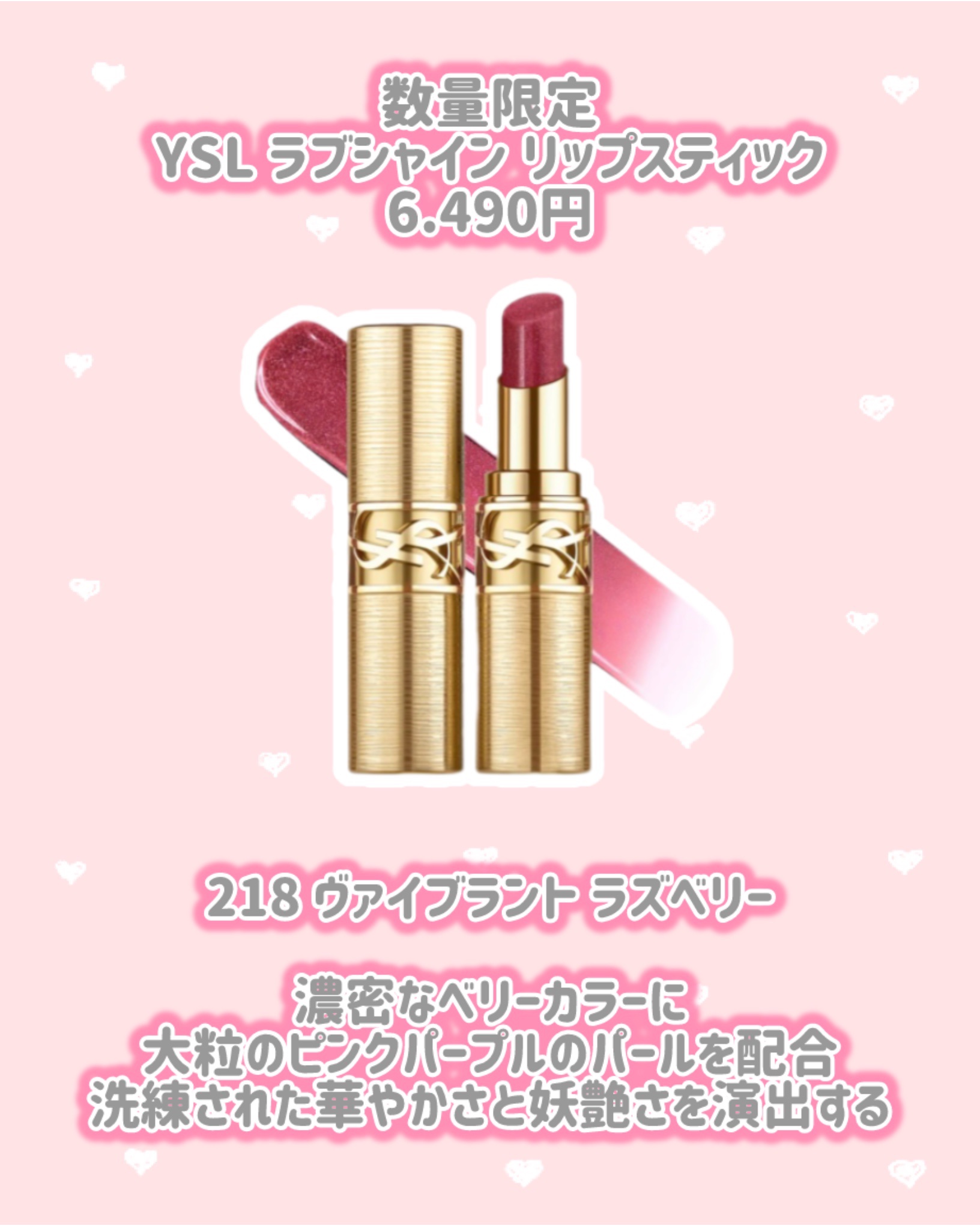 YSL2025ホリデーコレクション煌めく星屑ゴールド🌟#ラブシャインリップスティック<コレクター>6,490円#No.218ディープラズベリーピンク#ラブシャインキャンディグレーズ<コレクター>6,490円#No.21シマーヌード#No.22...