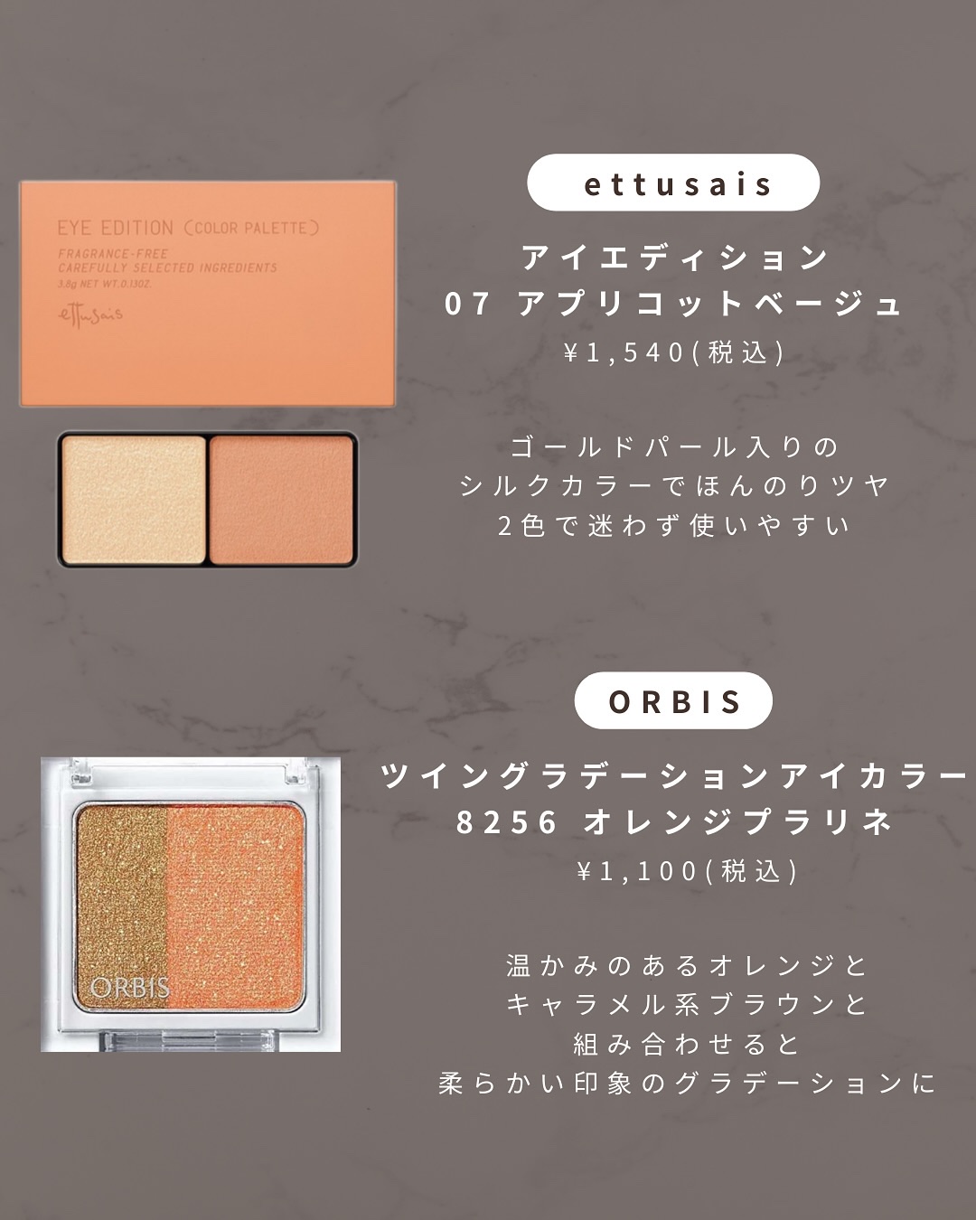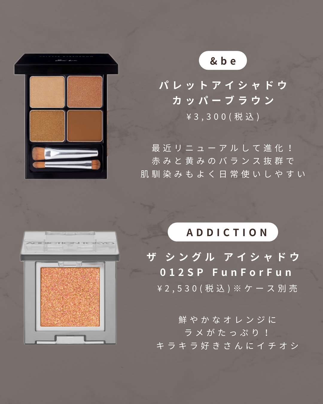 11Gはピンクカラーなので華やかに、 12Gはベージュカラーなので、かなり万能につかえる! クリームアイシャドウだから密着度も高くゆびでささっと塗るだけで仕上がるよ✌️ 値段もデパコスにしては手が出しやすい価格かな👛