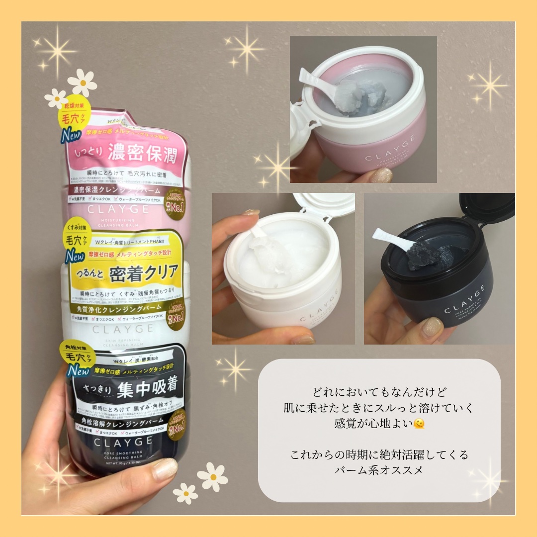 CLAYGE🩷モイスチャライジングクレンジングバーム🖤ポアスムージングクレンジングバームブラック🤍スキンリファイニングクレンジングバームCLAYGEの人気クレンジングがリニューアルして新登場🫧摩擦を抑える“メルティングタッチ設計”で、体温でと...