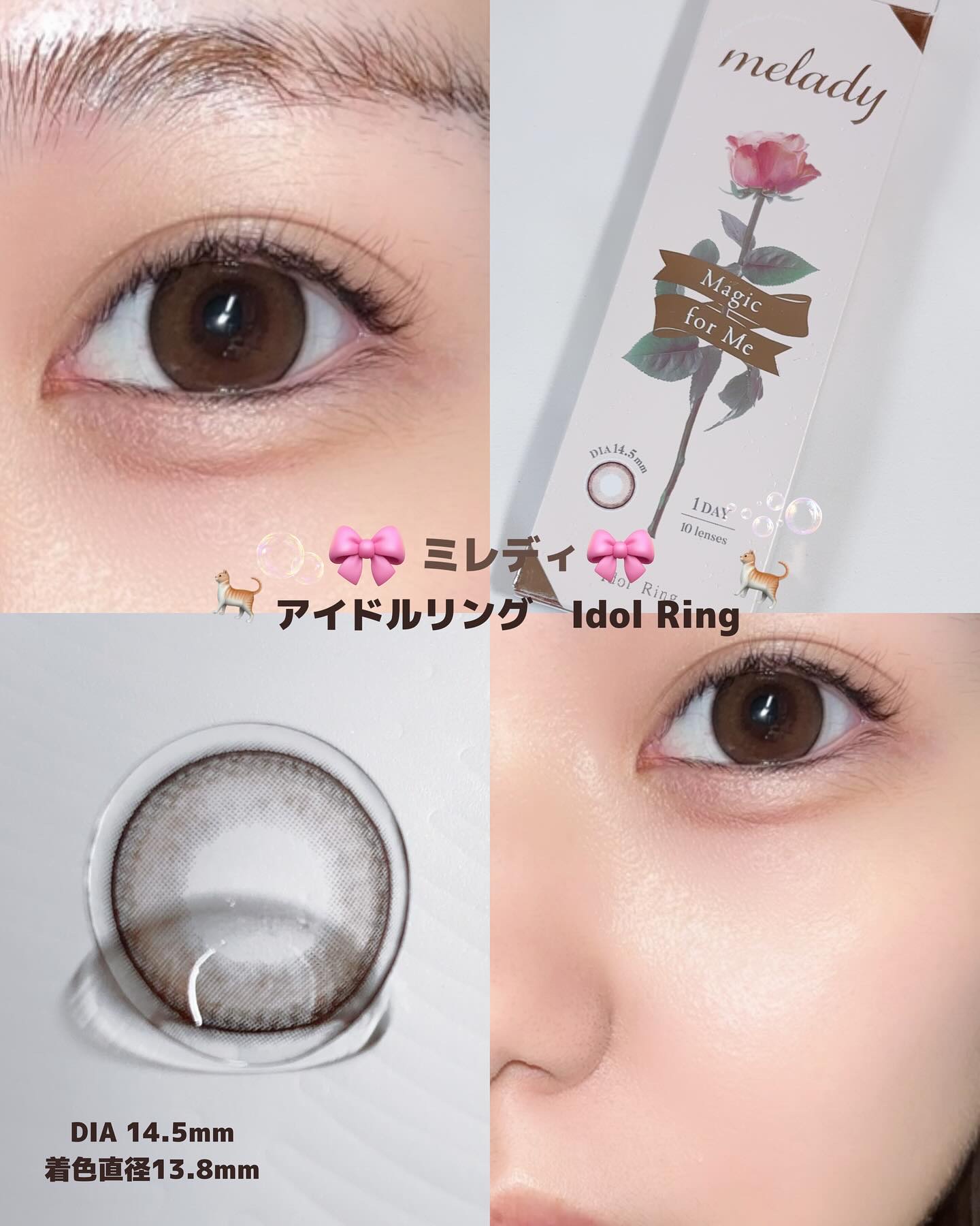 - ※2025年6月以降、商品パッケージ裏面・側面の一部表記を順次変更いたします。尚、これにかかる商品の交換・返品は承っておりません。 ヒロインの瞳の法則♡ ナチュラルなのにしっかり盛れるDIA14.5mm! ■ヒロインブラウン 透明感たっぷりなブラウンレンズ。瞳に馴染む色だからとってもナチュラル。 ■アイドルリング さりげない細フチとちゅるんブラウンがナチュラルに瞳を強調♡ ■ライアーピンク ピンクブラウンのフチとムラのあるデザインで立体感のあるきらきらな瞳を演出♡ ■レディブラック じゅわっとぼかした繊細なデザインで透明感に満ちた存在感のある瞳を演出♡ ■プリンセスショコラ しっかり太フチとあまくとろけるショコラブラウンでプリンセスみたいに愛される瞳に♡ ■スターグロー くりっと盛れる太フチとうるみツヤめく水光カラーで光を取りこむキラツヤな瞳に♡ カラーコンタクトレンズの不適正使用による眼障害の危険性等などがあります。 ●コンタクトレンズは高度管理医療機器です。不十分な洗浄・消毒など不適切なケアや、長時間・交換期間を超えた装用により、アレルギー性結膜炎、角膜感染症、角膜潰瘍等の重篤な眼障害が発生する危険性があります ●ご使用前に取扱説明書を確認してください 使用上の留意事項 ●眼科医院等を受診してからお求めください ●眼に異常を感じたら直ちにレンズ使用を中止し、お近くの眼科等で診察を受けてください ●医師の指示にしたがってご使用ください ●コンタクトレンズを装用する場合、自覚症状がなくても、眼科医院等での定期検査を受けてください ●レンズに不具合がある場合は使用しないでください