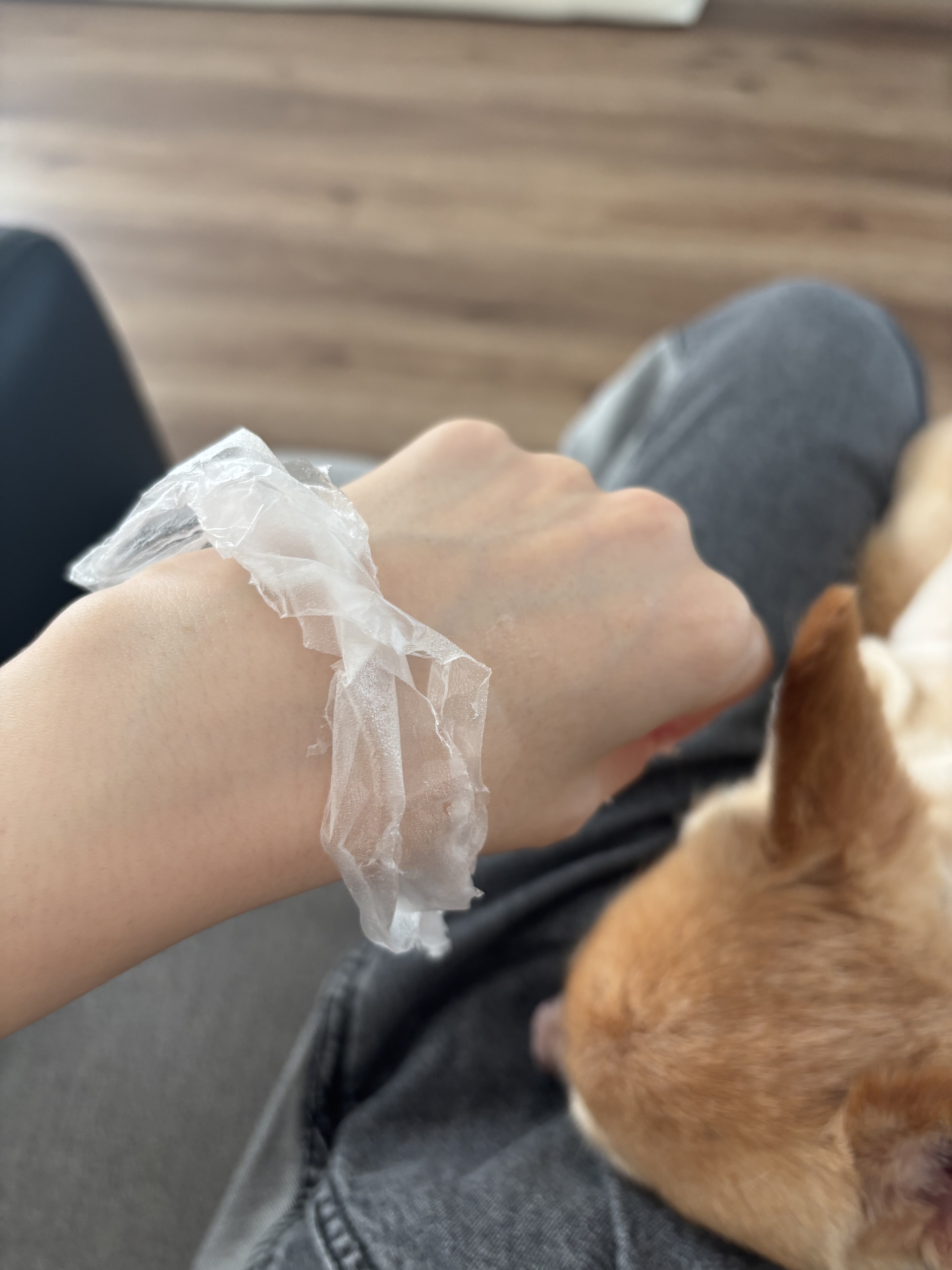 剥がしたパックに興味深々なチワワちゃんが可愛い😍