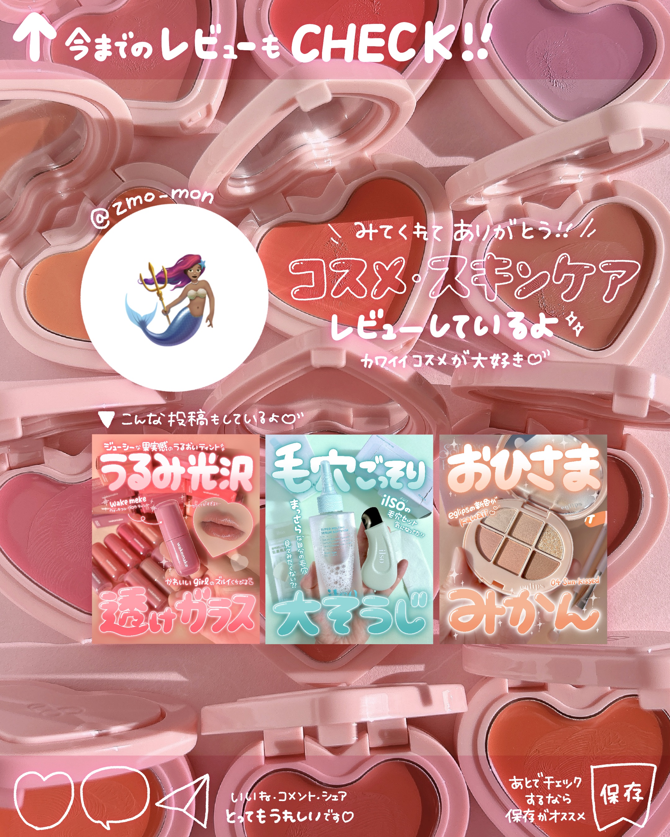 エスパのメイクさんプロデュースコスメ! 見た目がまず可愛い!ハートのパケってついつい買いがち💕 結構なめらかテクスチャー 皮脂と汗を吸収してメイクが浮いたり崩れを防止してくれるロングラスティング効果もあるチーク!! ムードのある微熱があるようなピンクベージュ 思ってたよりピンク感はなくて肌にのせるとコーラルっぽい感じだった!