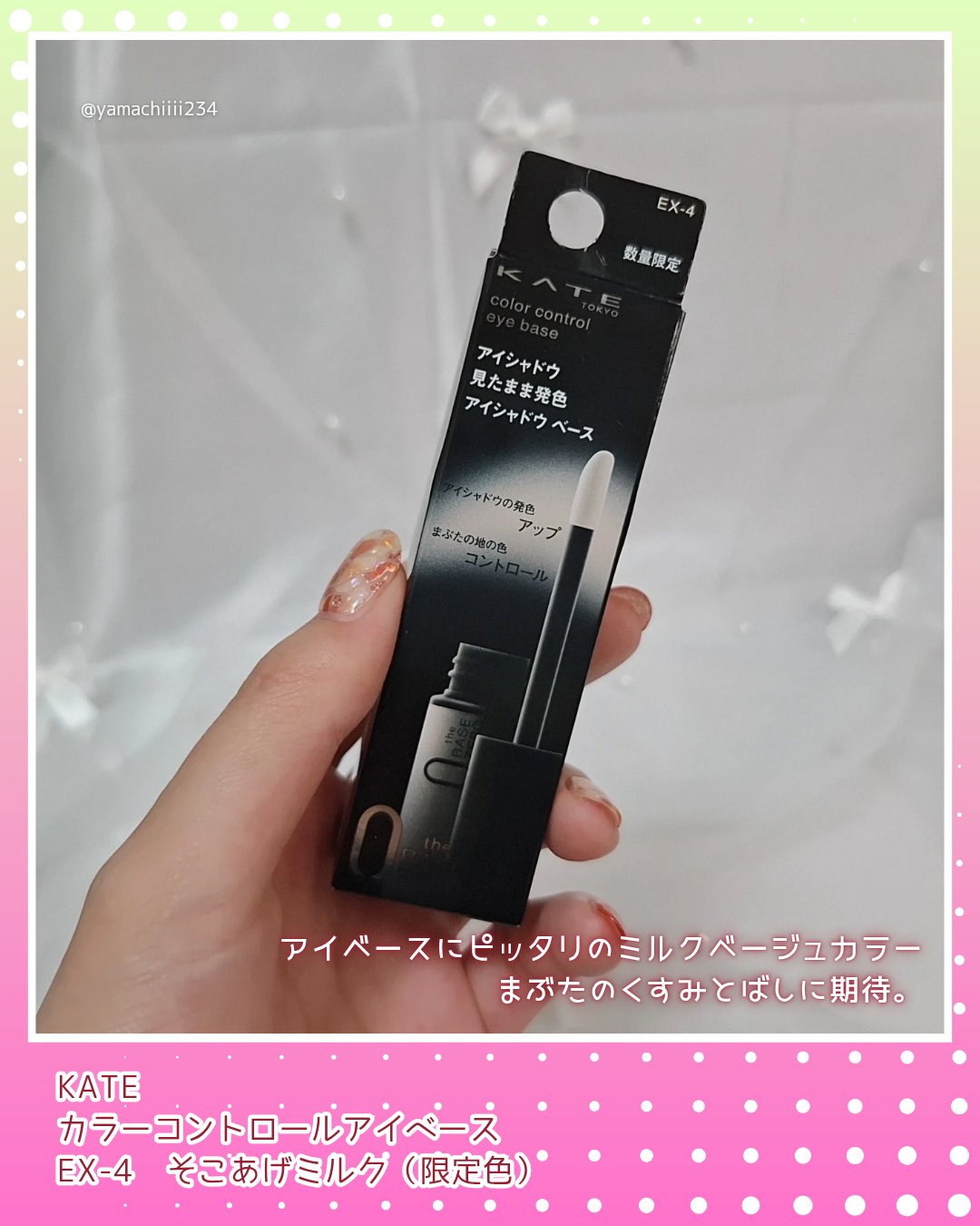 | アイシャドウベースランキング第13位 | クリームタイプのテクスチャー。 パールが含まれている為、ツヤ感のある仕上がりに🌟 | 詳細を見る | |
