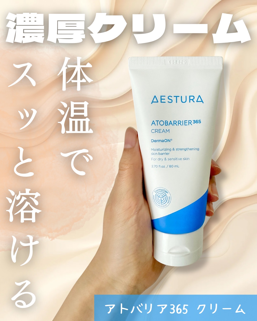 、商品名:アトバリア365クリーム敏感肌に特化したAESTURA独自技術の「高密度セラミドカプセル*」を配合 *セラミドNP、スフィンゴ脂質、ヒドロキシプロピルビスパルミタミドMEA、コレステロール、ステアリン酸、アラキン酸、オレイン酸、パル...