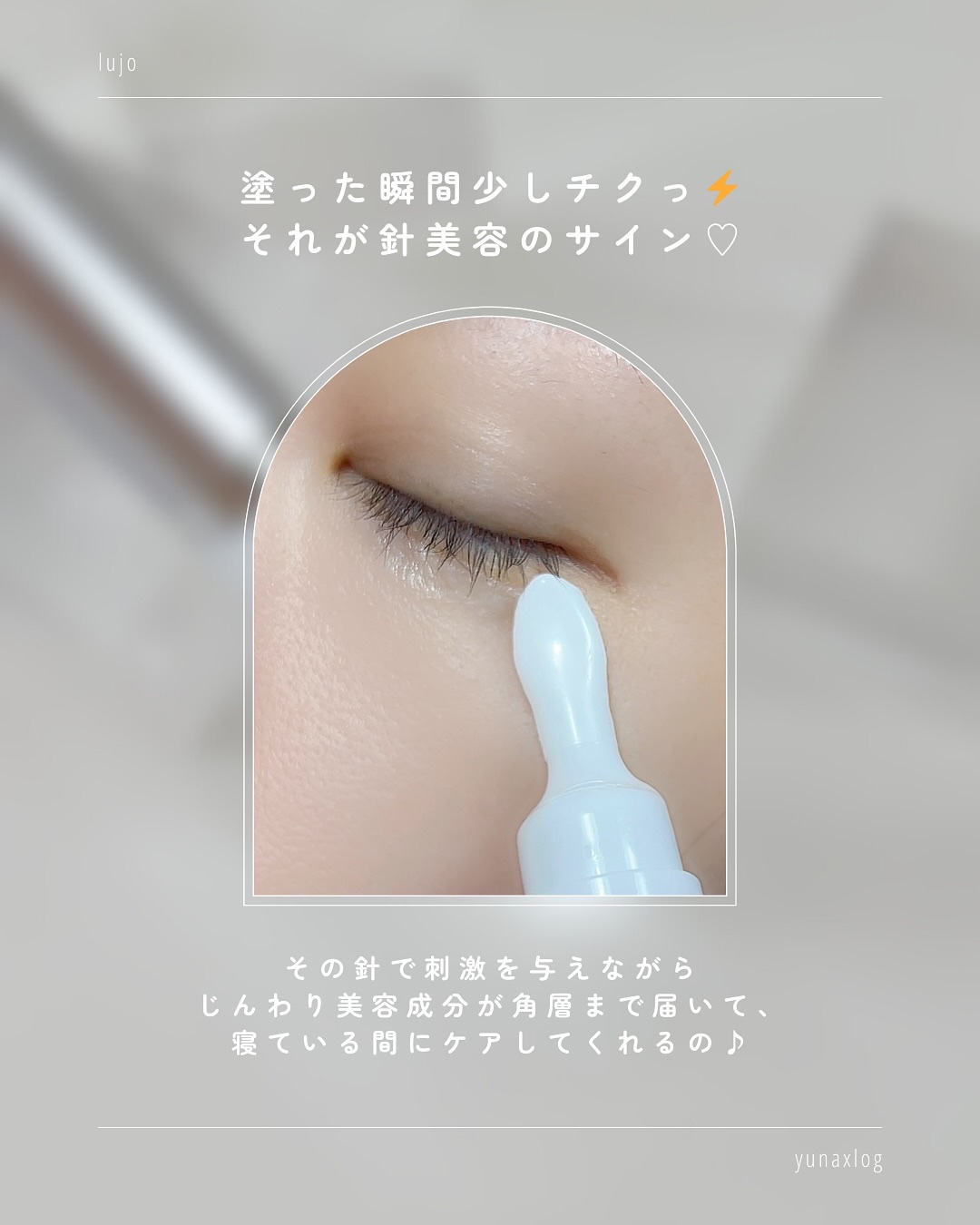 lujoニードルセラムをお試しさせて頂きました🥰気になっていた目元のシワや、たるみがどうしても年齢を感じさせる部分だったので期待を込めて使ってみました✨塗った瞬間のチクっとした使い心地も新鮮!美容成分がじんわり角層まで届けられているような感覚...