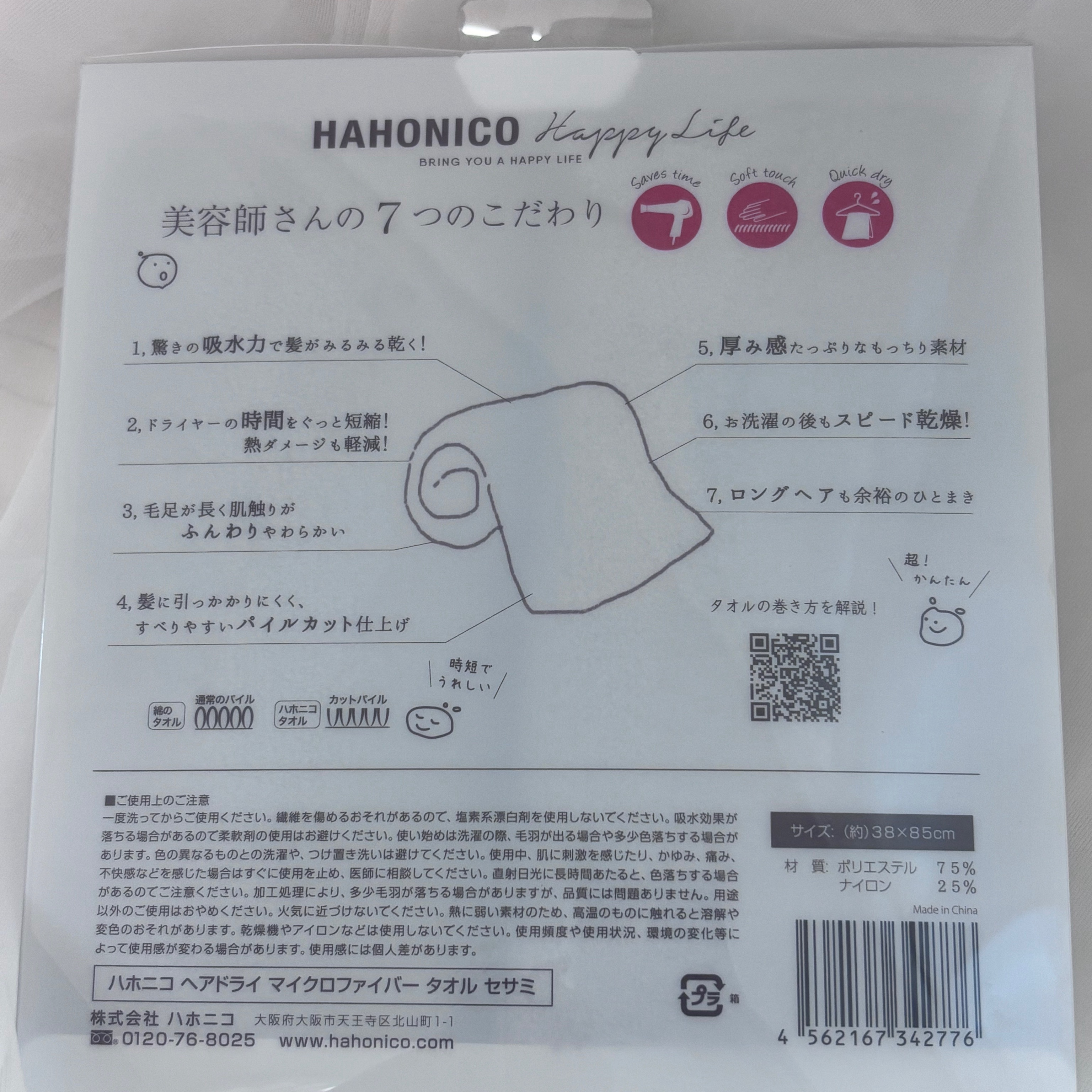 商品詳細情報ハホニコハッピーライフ ヘアドライマイクロファイバータオル