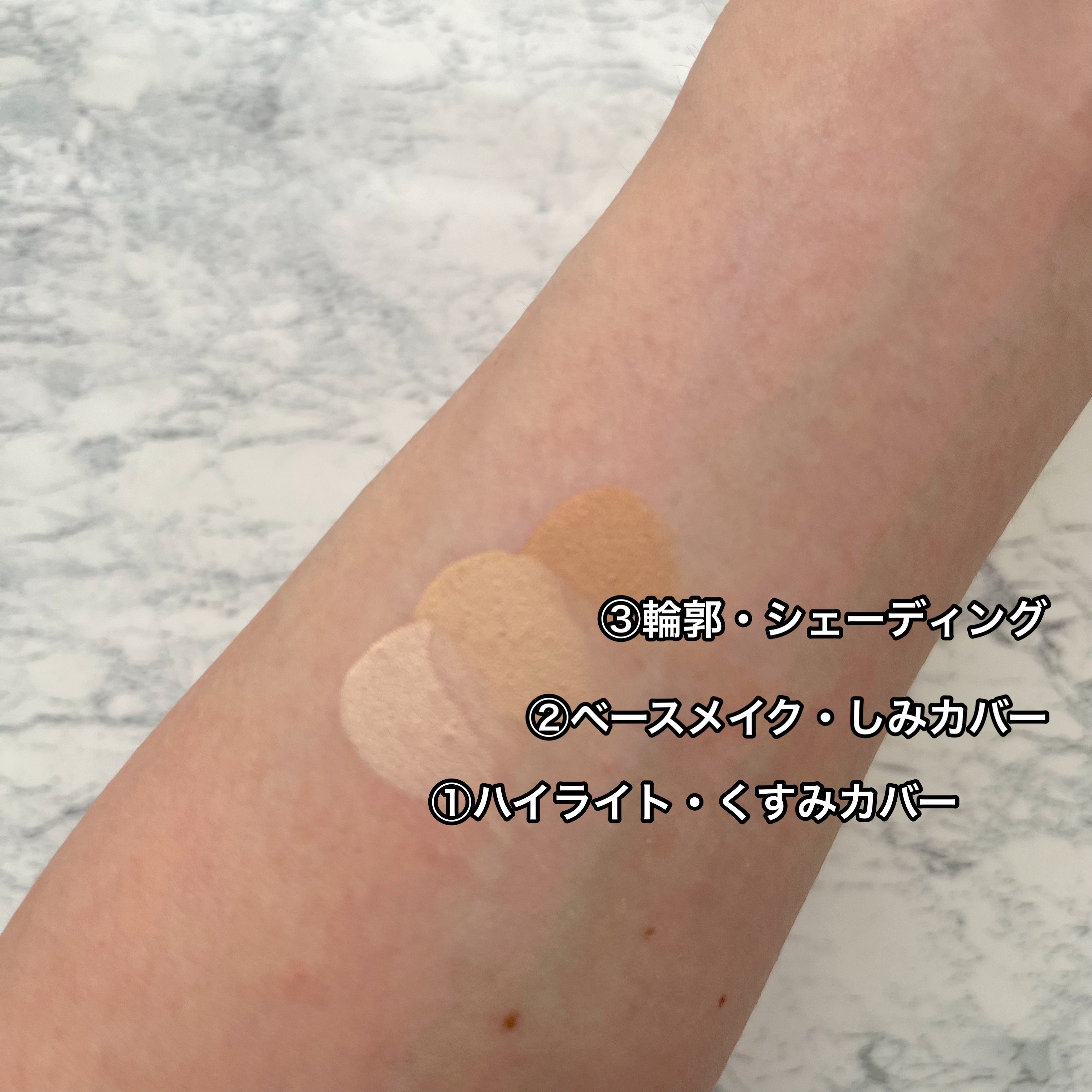 - クマからニキビ跡、シミまでこれ1つでカバー。 3色タイプだからこそ、気になるところや肌色を選ばずにご使用いただけます。 リキッドタイプを圧縮した高濃度バームのため高カバー高密着*¹を実現。 コンシーラーだけでなくコントアとしても使用可能です。 *1メーカー比