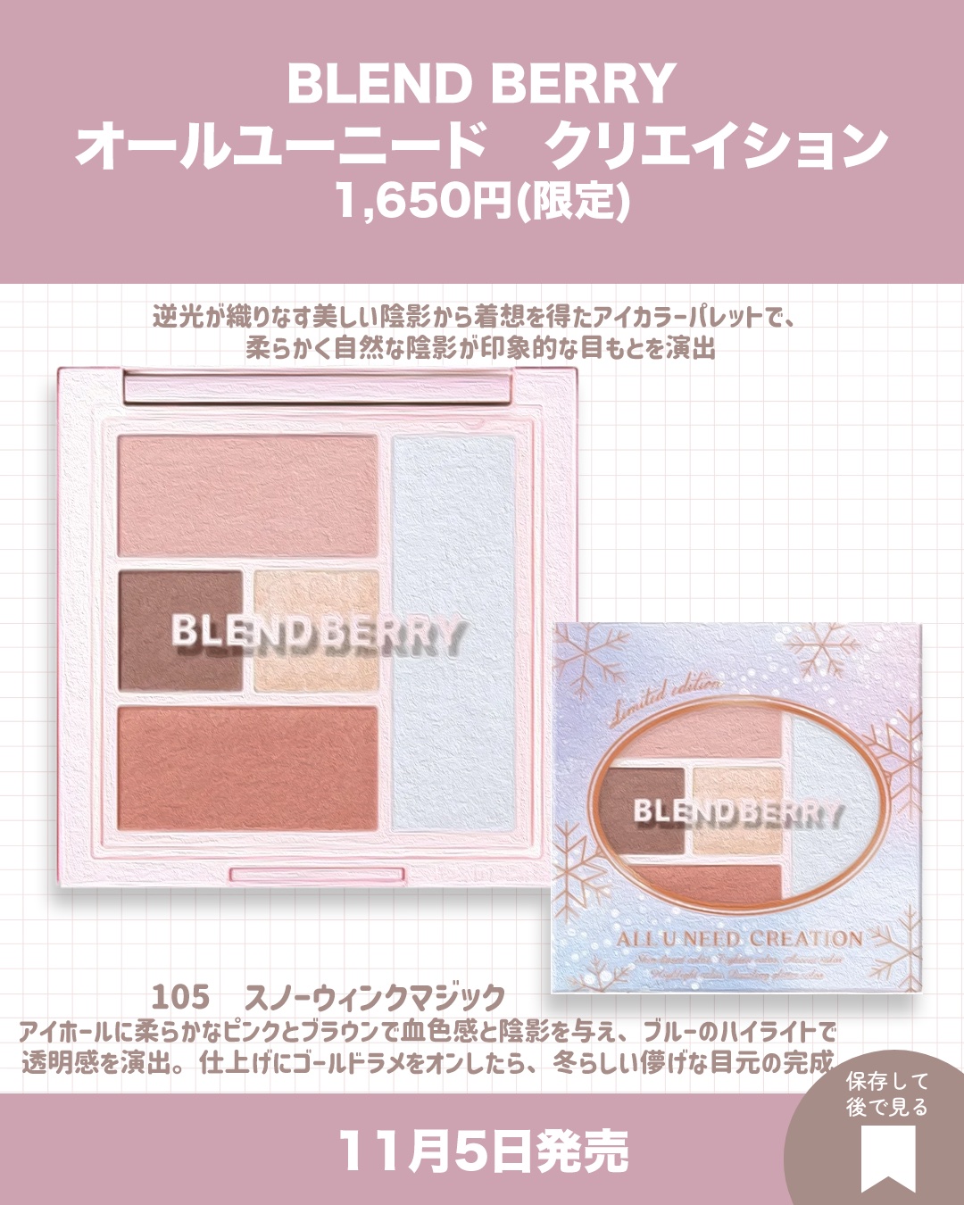 .BLENDBERRYからホリデーコレクションが登場👏月明かりと街のきらめきと共に輝く冬の世界をイメージ✨️11月5日発売❤・ブレンドベリーリップバルーン・ブレンドベリーオールユーニードクリエイション・ブレンドベリーシューティングビジューアイ...