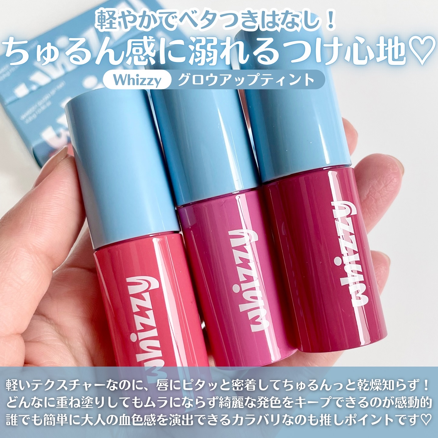 #pr🍒whizzyglowuptintBLUSHRUSHRUBYCRUSHとにかく発色がしっかり、鮮やかティント‼️カラバリ豊富❤️🔥🍒ぷっくり唇で長時間発色とツヤをキープ🍒重ねてもムラになりにくいドン・キホーテにて会えるかも💞💞BLUS...