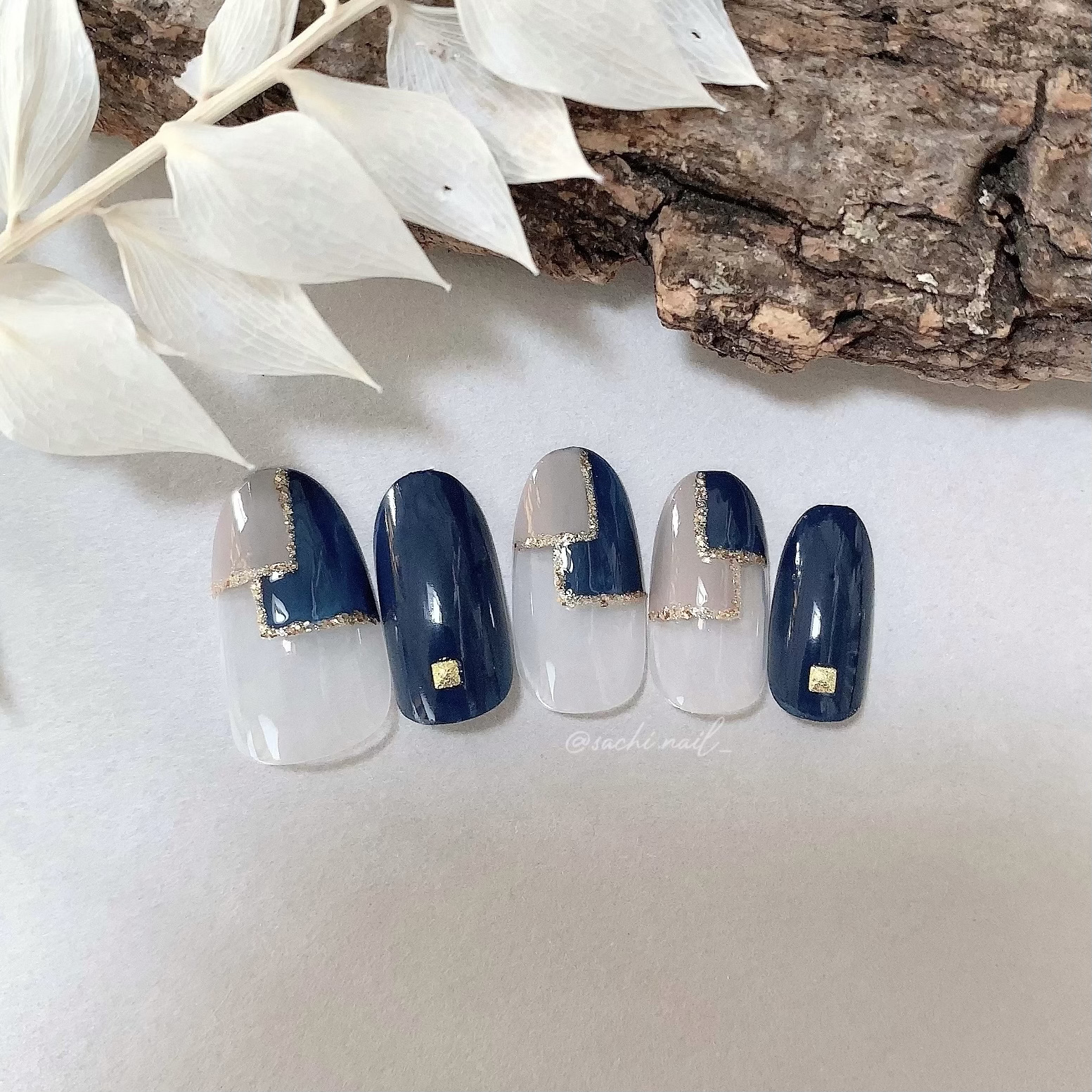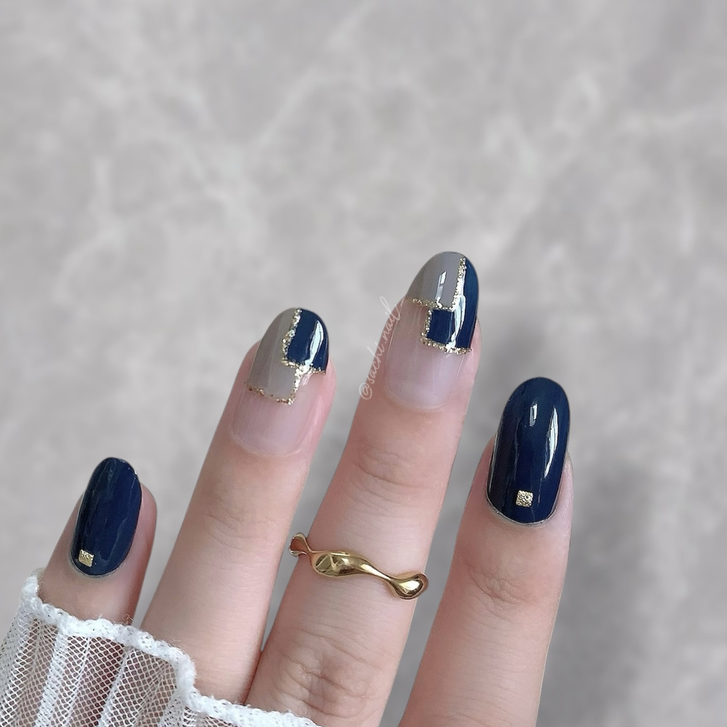 ワンカラーでも指ごとに色を変えるだけでオシャレに見えます💕 画像のようにゴールドラインとストーンを少し足すだけで華やかさがアップ🥰 何度かご紹介したことのあるスポンジで作るグラデーションです✨ スポンジを使うことで境目が綺麗に馴染んでくれます💕 アルミホイルの上でブラウンとトップコートを1:1くらいで混ぜたものを、トップコートのハケに取って3箇所に塗るだけ👌 事前に混ぜたものを塗ることで、爪の上でぼかすより簡単に出来ます💕 ベースカラーが乾く前に点置きしてぼかすことで綺麗にぼかせます✨ スピードが大事なので、使うポリッシュのキャップは全て開けておきましょう😊 天然石のラインはガタガタの方がより天然石っぽく見えるので、ラインを描くのが苦手な方でも大丈夫🙆♀️ 難しそうに見えて、やってみると意外と簡単に出来ます♡