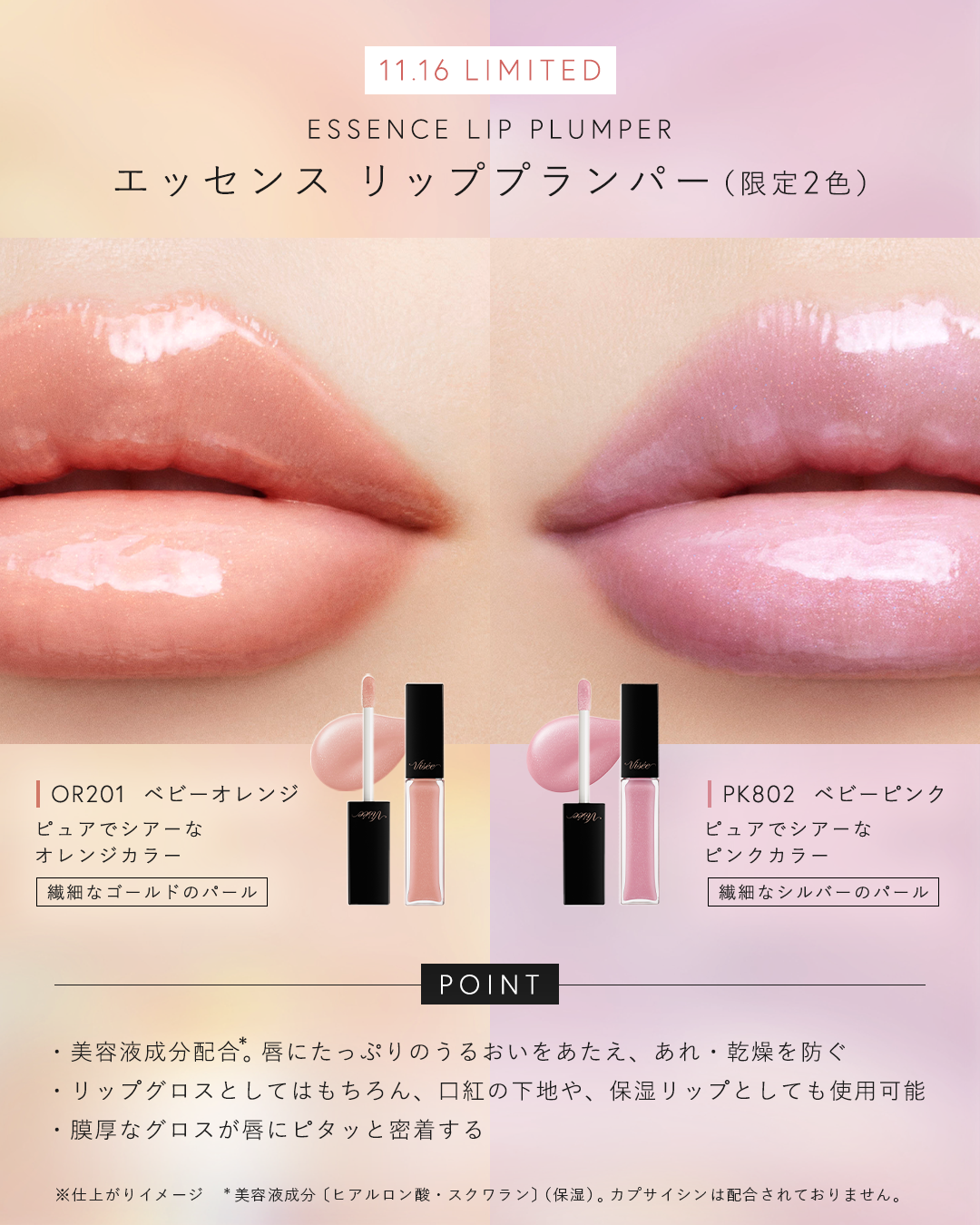 大人気のヴィセのリッププランパーに限定ピュアなミルキーカラーが登場!💖Visée(ヴィセ)エッセンスリッププランパーOR201ベビーオレンジ(限定色)PK802ベビーピンク(限定色)各¥1,430(税込)OR201ベビーオレンジにはゴールドパ...