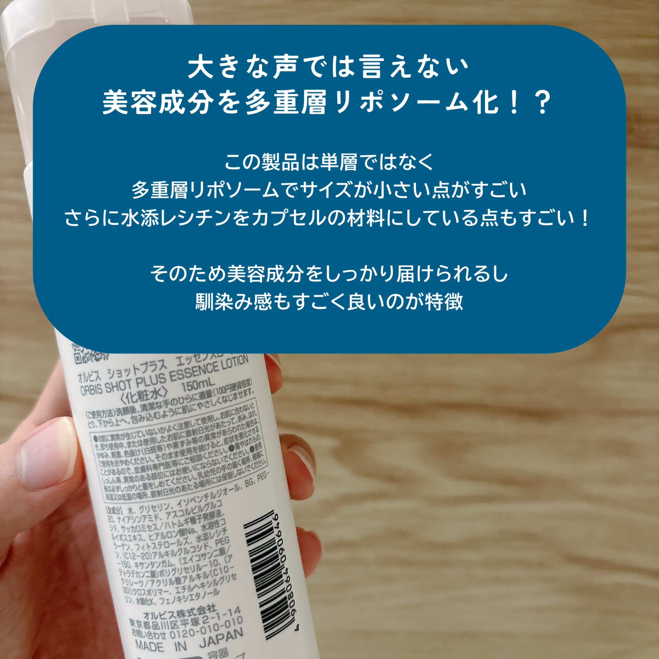 - 「ORBIS SHOT PLUS(オルビス ショットプラス)」には、肌に必要な保湿成分を届ける力(=SHOT)、そしてオルビスが培ってきた、ビューティの可能性を信じ「美しくなりたい」という想いに寄り添い、その先の肌の美しさまでも約束していく(=PLUS)、という想いを込めています。 そして今回、ポーラ化成工業の 90 年の化粧品開発研究から得た、エイジングケア*1知見を結集。美容保湿成分を早く・角層隅々まで届けることで、気になる乾燥・ハリ・くすみ*2など、年を重ねるごとに気になるエイジングサイン*3を狙い撃つ高浸透*4エイジングケアシリーズです。エイジングサインへ角層隅々まで美容成分を届けるナノ NC デリバーカプセル*5の力で、肌に乗せた瞬間、美容保湿成分がぐんぐん浸透*4してくれる濃密な“濃ぃじゅわ”化粧水です。肌のくすみ*2やハリ低下など、悩み*2の元に寄り添いながらケアしてくれます。 *1 年齢に応じたお手入れ *2 乾燥による *3 乾燥・ハリ低下 *4 角層まで *5 フィトステロールズ、水添レシチン、(C12-20)アルキルグルコシド=基剤