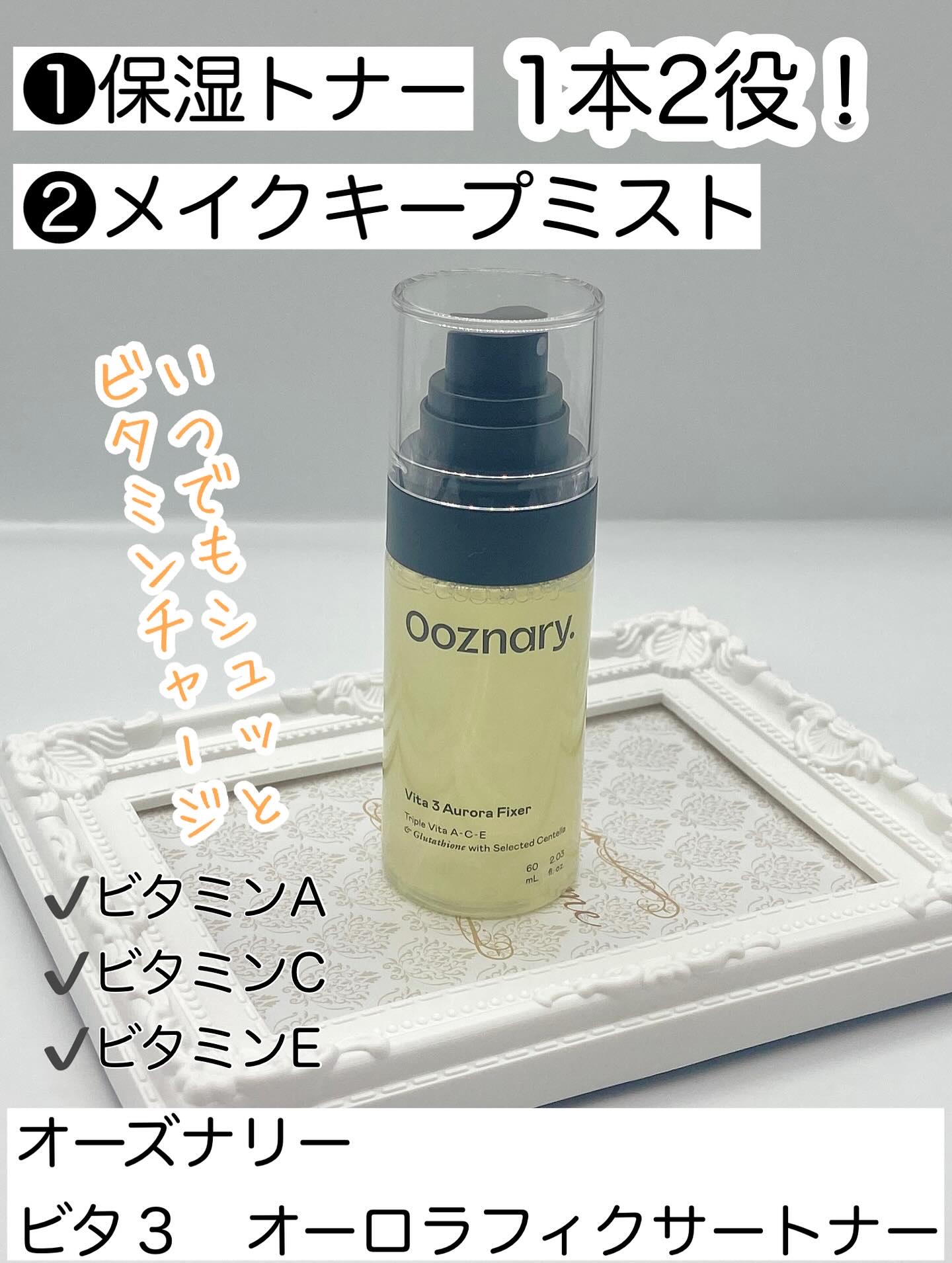 ooznary(オーズナリー)「ビタ3オーロラフィクサートナー」を使ってみました😊こちらの商品は、1本で「密着感+メイクキープ+透明感のある肌印象+ハリツヤケア」まで叶えてくれるという、マルチユース設計のフィクサートナーになります✨クリスタル...