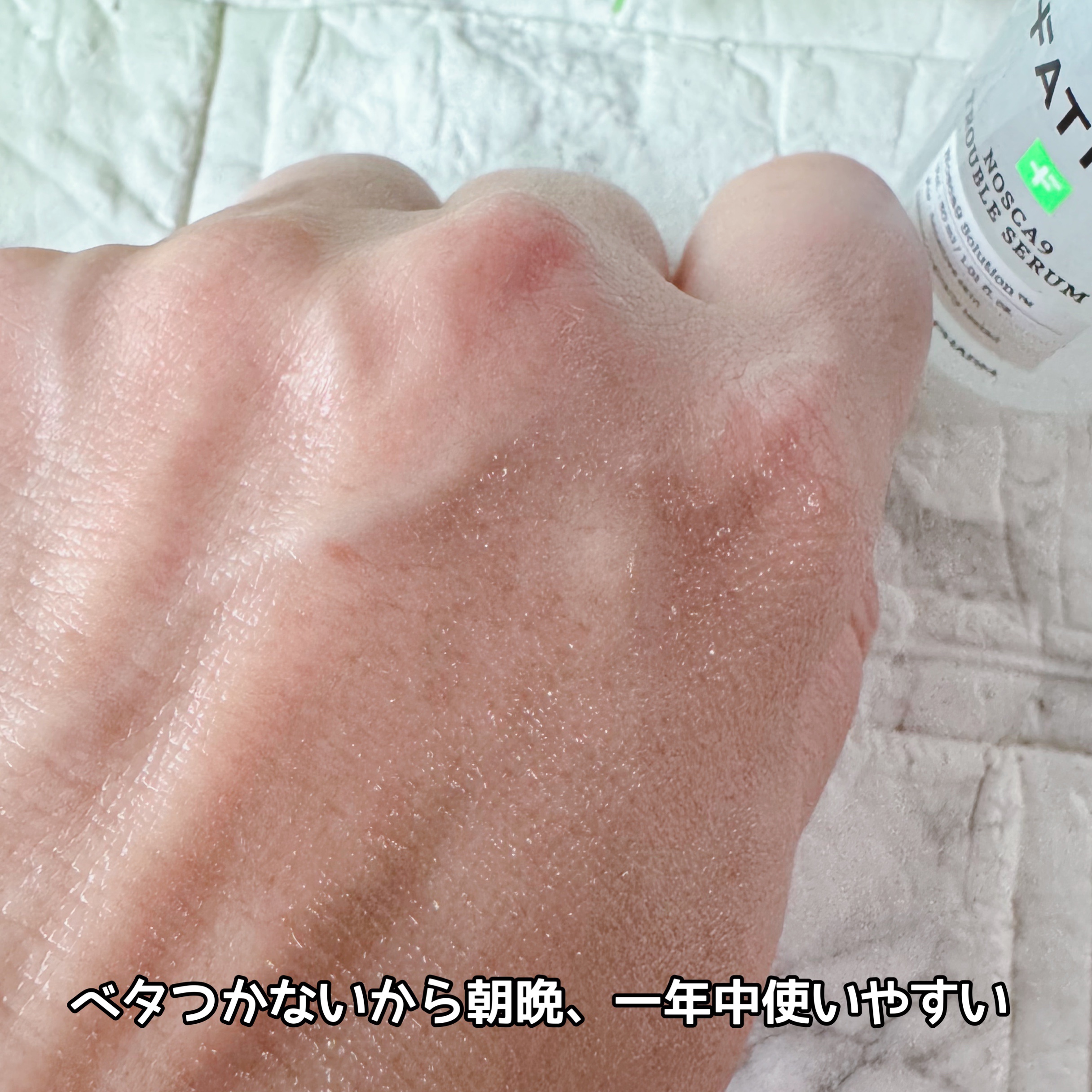 | とろみのあるテクスチャーだけど、肌にのばすとさらっとしていてみずみずしい使用感だよ☺️ | 詳細を見る | ||