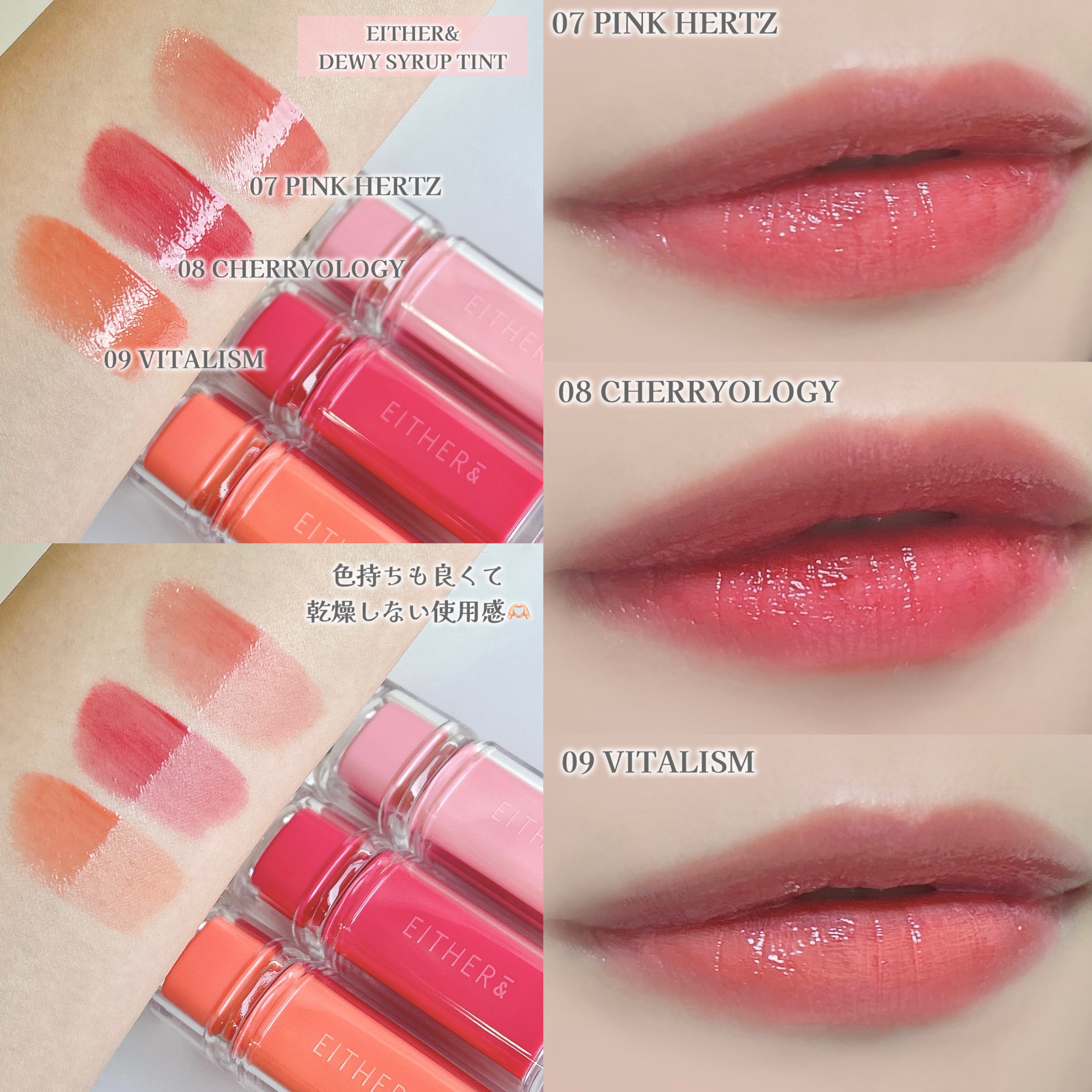 EITHER&DewySyrupTint07/08/09EITHER&の人気アイテムDewySyrupTintから新色が新発売🕯𓂃·゚軽やかな塗り心地でちゅるんと光沢感のある唇を叶える。色持ちとツヤ感が長続きして飲食時におすすめ!◎10/11...