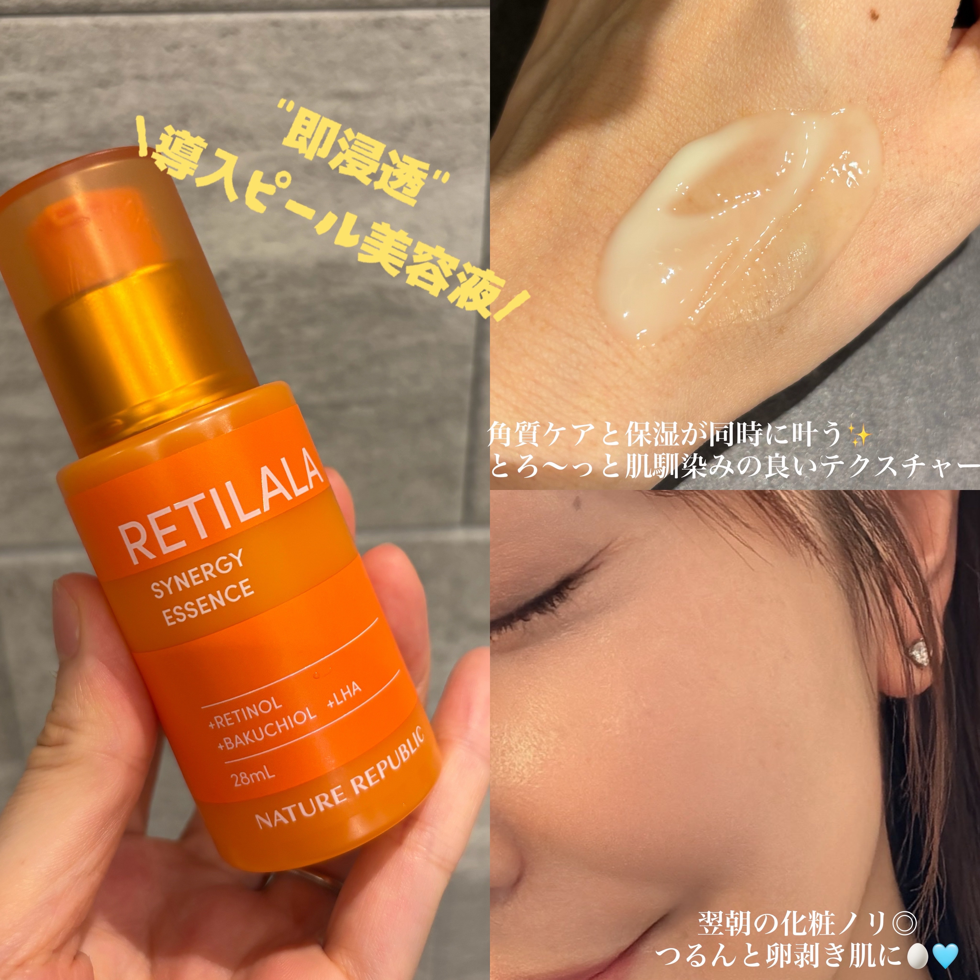 洗顔後すぐに塗って「角質ケア」と「保湿」のWケア🫧🆕10月1日発売🧡ネイチャーリパブリックレチララ美容液¥2,640"即浸透"導入ピール美容液肌のターンオーバーをサポートしてくれるレチノールとバクチオール🫧毛穴の目立たない、なめらかな透明素肌...
