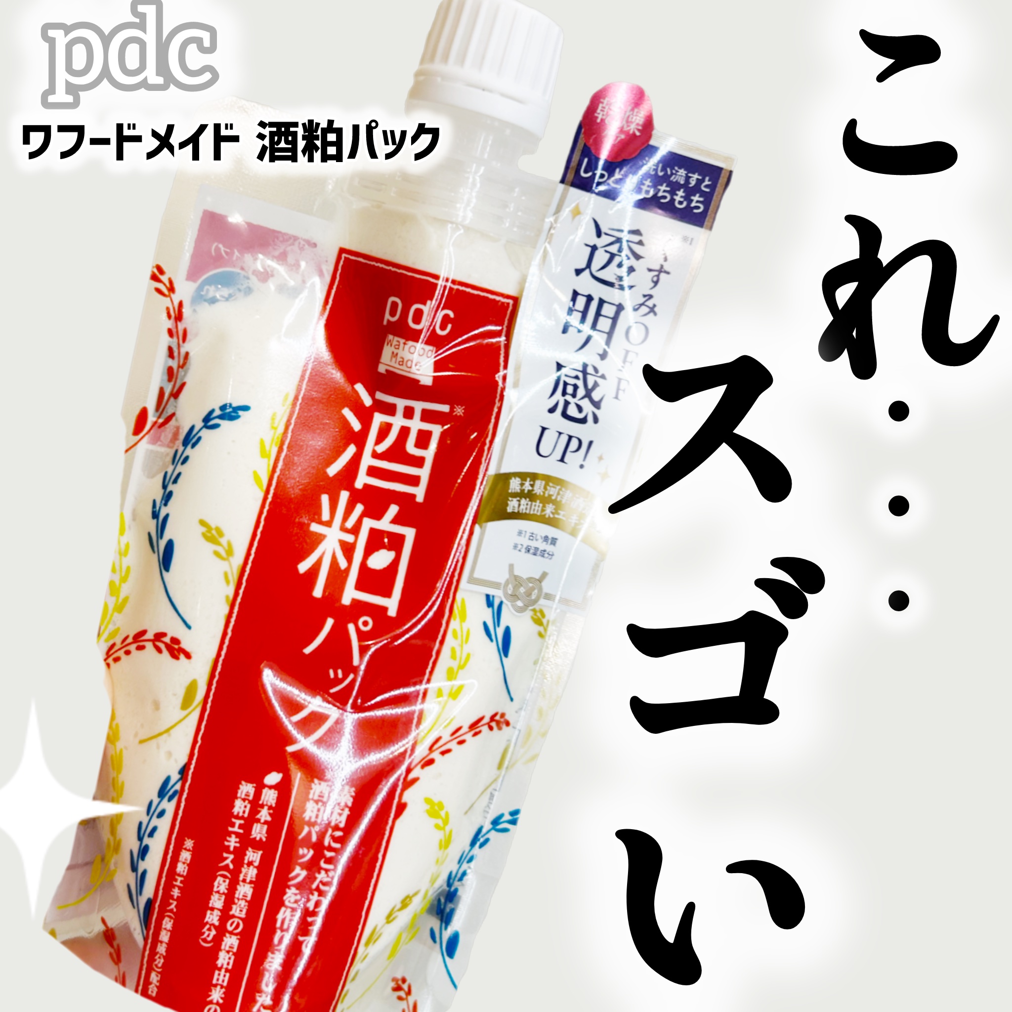 pdcワフードメイド酒粕パック使ってみたよ!くすみ*を洗い落としてしっとり透明感*1アップ!さらに乾燥対策にも◎自分史上最高の肌を目指せるよ!オリジナルの酒粕エキス(保湿成分)を配合した洗い流しパックです。*古い角質*1うるおいによる熊本県河...