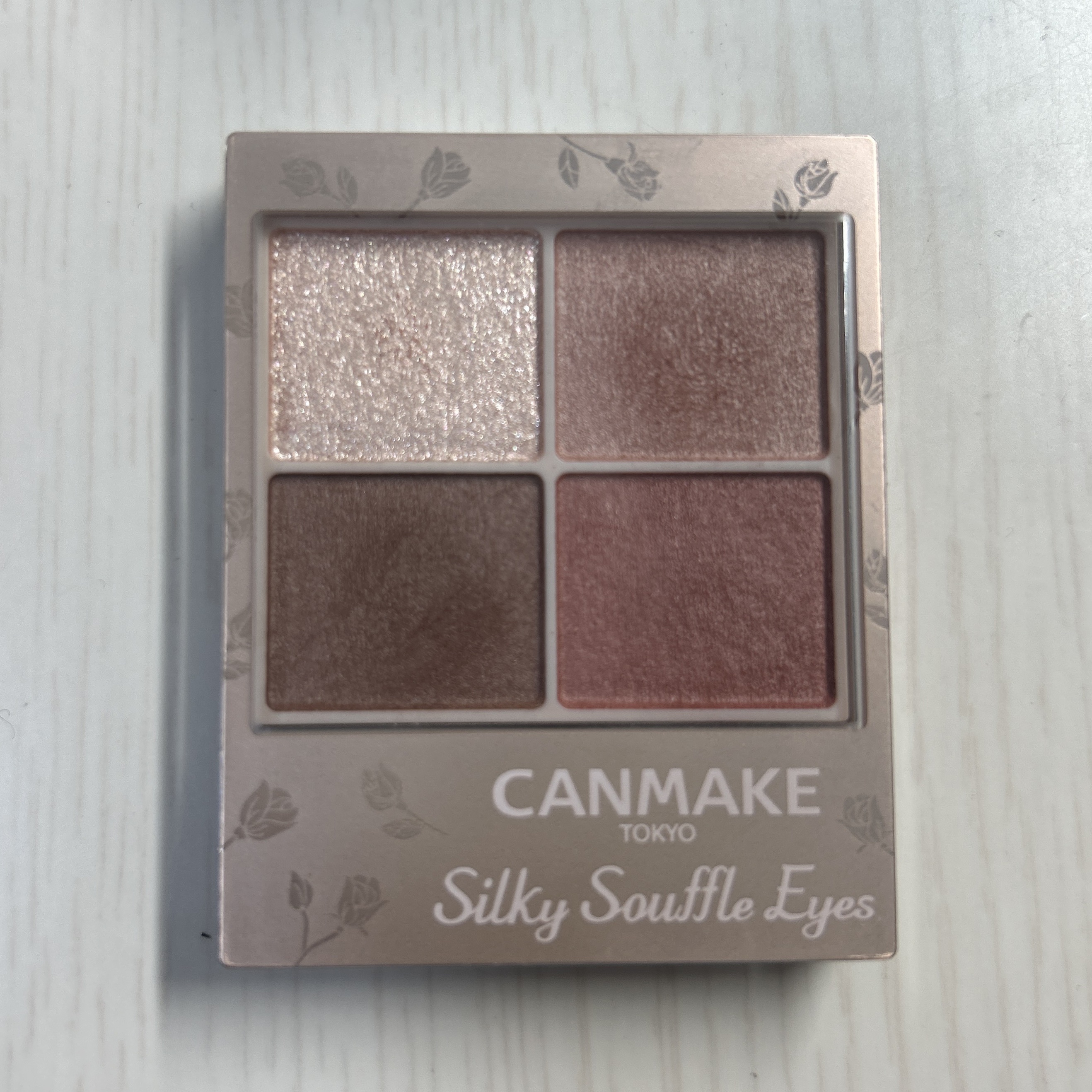- シルキースフレアイズの姉妹品♡ 肌に溶け込むような透けマットシャドウ 透け感のある柔らかい仕上がりになるマット3色と、透け発色の繊細ラメ1色のパレットシャドウ♡ 完全マットアイや、ラメ×マットアイなど、メイクのパターンを楽しみましょう!