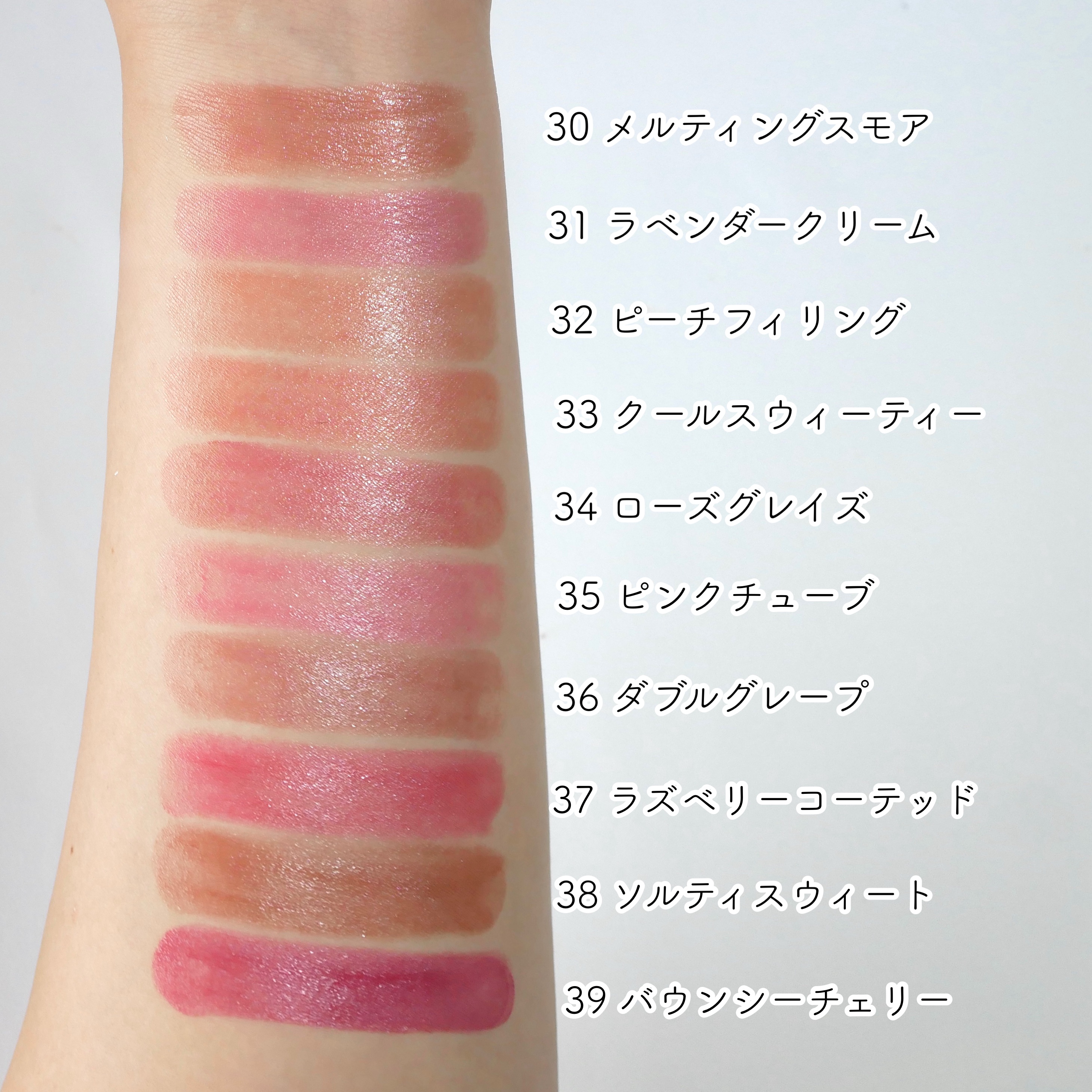 とにかく質感がしーっとりととろけるバームテクスチャーで、保湿力はかなり高い! 少しペタペタもしますが密着力もあるので色持ち良し♪ マスクレスの時にぜひ使いたいぷるぷるでツヤがきれいな仕上がりです。 カラー展開も豊富で、イエベさん向けブルベさん向け揃ってます☆ 私のお気に入りは01と05♡ そして08 Coraliaも可愛くって好き! 6月からドラッグストアにも展開予定だそうですよ♡
