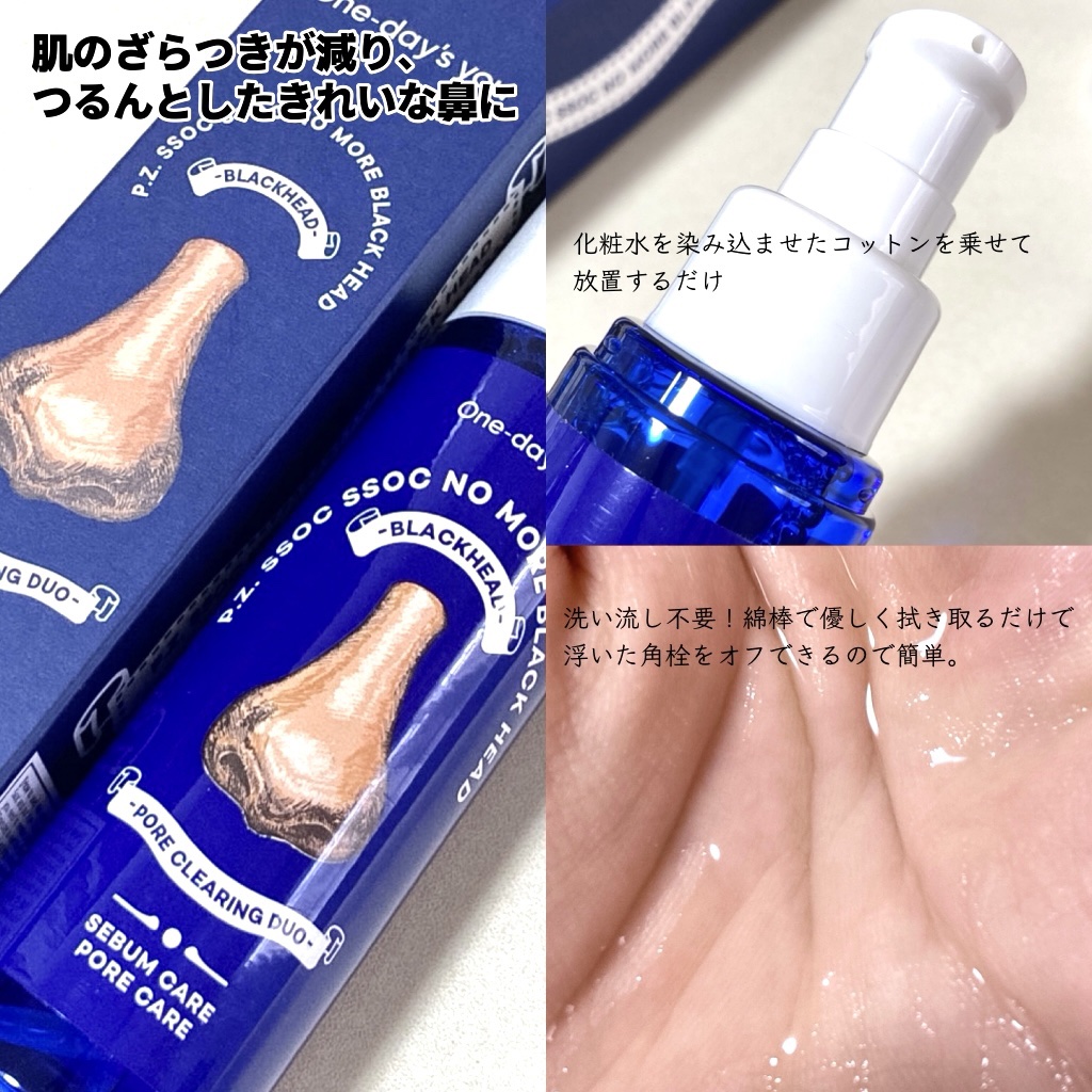 【つるんとした手触りがクセになる!】⭐️One-day'syouノーモアブラックヘッド⭐️こんにちは!もちもち大福です。今回はOne-day'syouノーモアブラックヘッドを紹介したいと思います。コットンや鼻シートに含ませて鼻に数分置いてから...