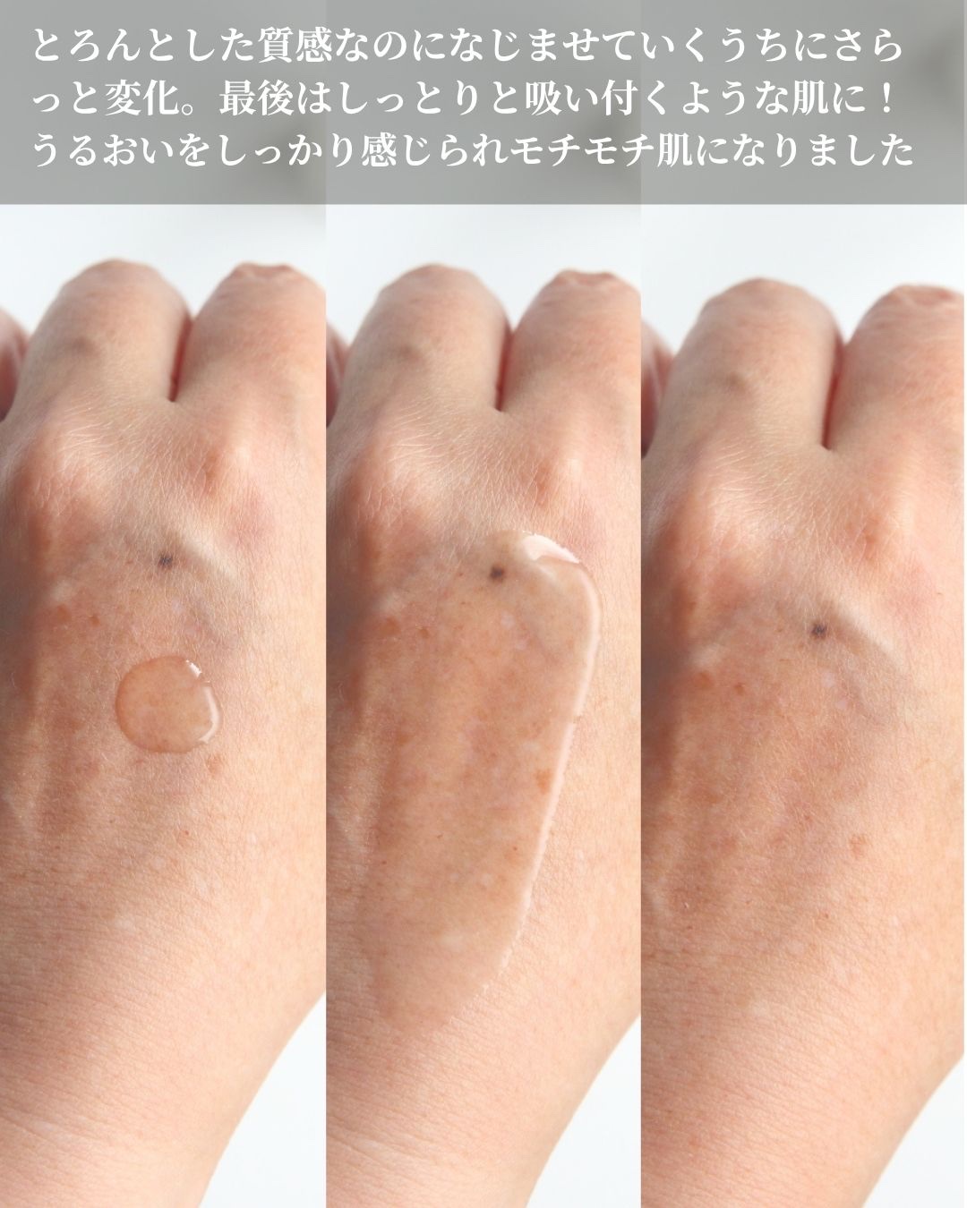 | とろみのあるテクスチャーだけど、肌にのばすとさらっとしていてみずみずしい使用感だよ☺️ | 詳細を見る | |