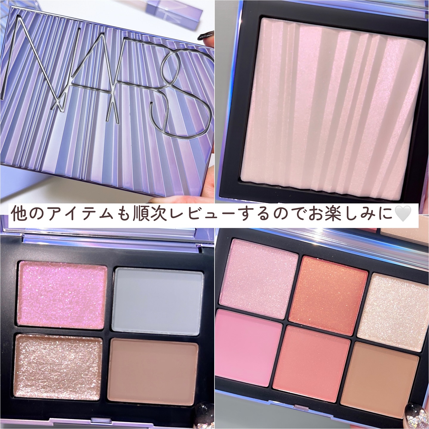 しっとりなめらかな粉質で、肌に光が溶け込む。 ツヤの美しさや発光具合は写真の通り。 ひと塗りで極上の艶を纏うことができます。 私が1番感動したのは 03 パールグロウ 水色やパープルをはじめとした細かいラメがぎっしり。 まるでダイヤモンドのような輝きでこれが最高💎 いざ肌に乗せると透明感たっぷりで白浮きしません。 今日アイシャドウとして使ってみたらまぶたが濡れたように艶めいて最高だった!! ラメ大好き芸人のみなさんは絶対チェックして欲しいです。 パケもしっかり可愛いです♡ 中身も見た目ももはや無敵。 これ、買わない理由ある??
