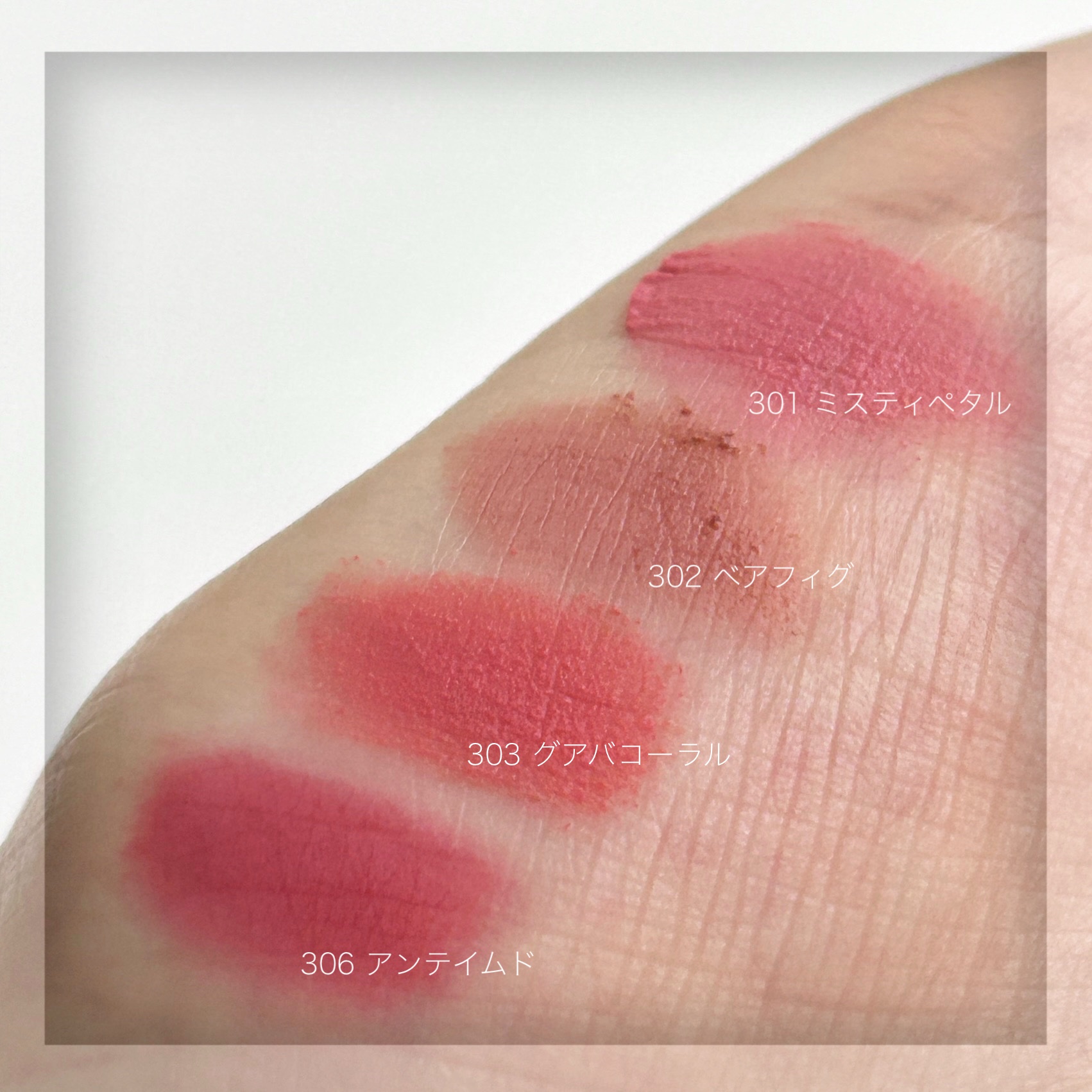 - -「ティント処方」でつけたての色をキープ。 - 少量でも唇全体がふんわりブラーリングされたような仕上がり。 - 乾燥しにくいマット質感で、角質浮きしにくいなめらかなテクスチャー。 - 無香料・パラベン不使用・動物由来成分不使用。