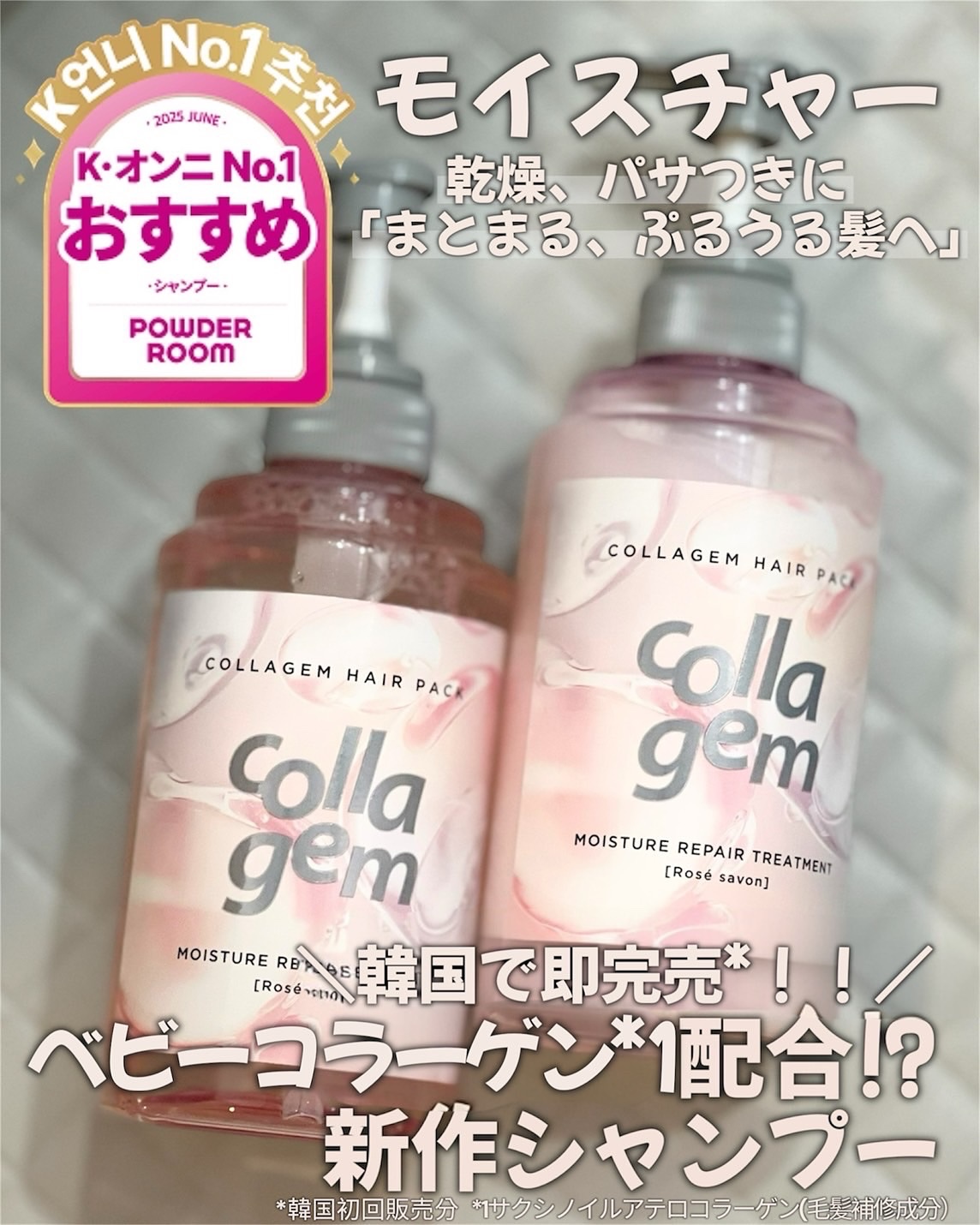 🌿モイスチャーリペアシャンプーモイスチャーリペアトリートメントcollagem〈コラジェム〉韓国で即完売*の香水のようなおしゃれな香りのシャンプー&トリートメント✨*韓国初回販売分 赤ちゃんの肌に含まれる「ベビーコラーゲン*1」配合の濃密コラ...