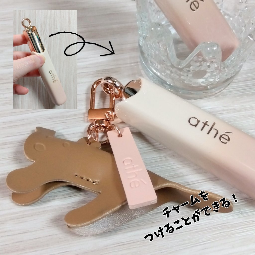 - athéからうるおい重視のヴィーガンリップ登場。コーティングしたようなぷるんとツヤのある唇に演出します。 #スリーピングマスクのような保湿感 #ふっくら*1&つやつや #ボリューム感*1演出 ☑ラッピング力:手のひらの温度(31-32℃)よりも低い唇の温度(28℃)でも溶けるテクスチャーにこだわり、ふっくら*1としたツヤ感。 ☑3色のカラー展開:1色でも使いやすく、重ね塗りでもより可愛いカラーに仕上げました。 ☑全体の80%以上が保湿成分:コラーゲン*2、ペプチド*2でハリ感を出し、スクワラン*2、セラミド*2で保湿。 ☑使用感:唇の温度で柔らかく溶け、角質をケアしながら唇にハリとツヤをプラス。 ☑こだわり容器:リップグローイバームはやわらかいテクスチャーのため、少しずつゆっくり繰り出せる容器に設計。 先端が丸いリング状になっており、お好みのチャーム等を付けてアレンジできるのも特徴。 マグネットで閉まる設計で容器が割れやすい問題にも対処しました。 *1 メイクアップ効果による *2 配合目的:保湿