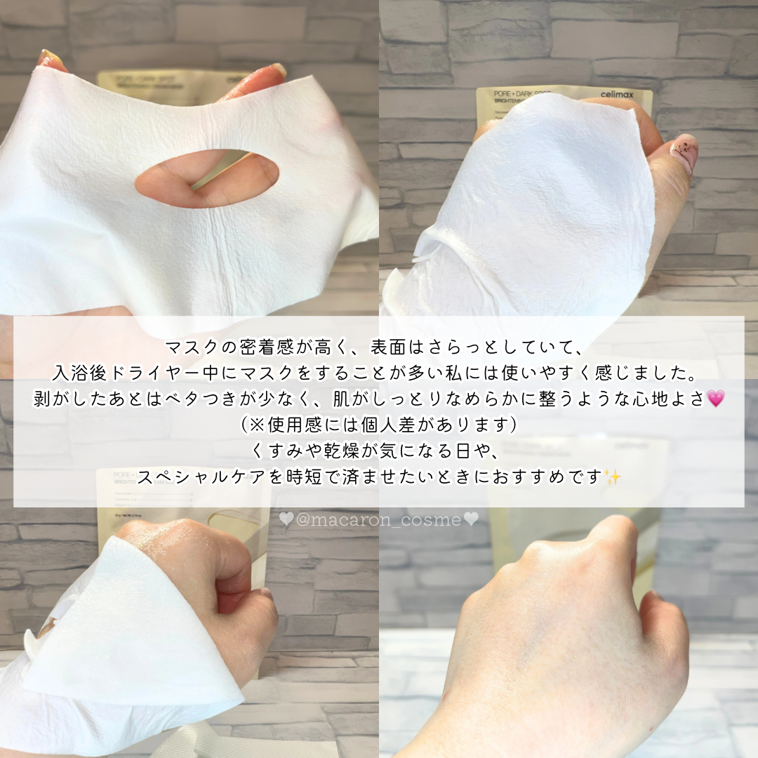 新感覚!特殊クリームラッピング生地のクリームラッピングマスクを紹介します🎭celimax(セリマックス)ポアブライトニングクリームラッピングマスク20g/4枚特殊コーティングラッピングシートで内側にのみクリームを塗布していて表面にクリームが付...
