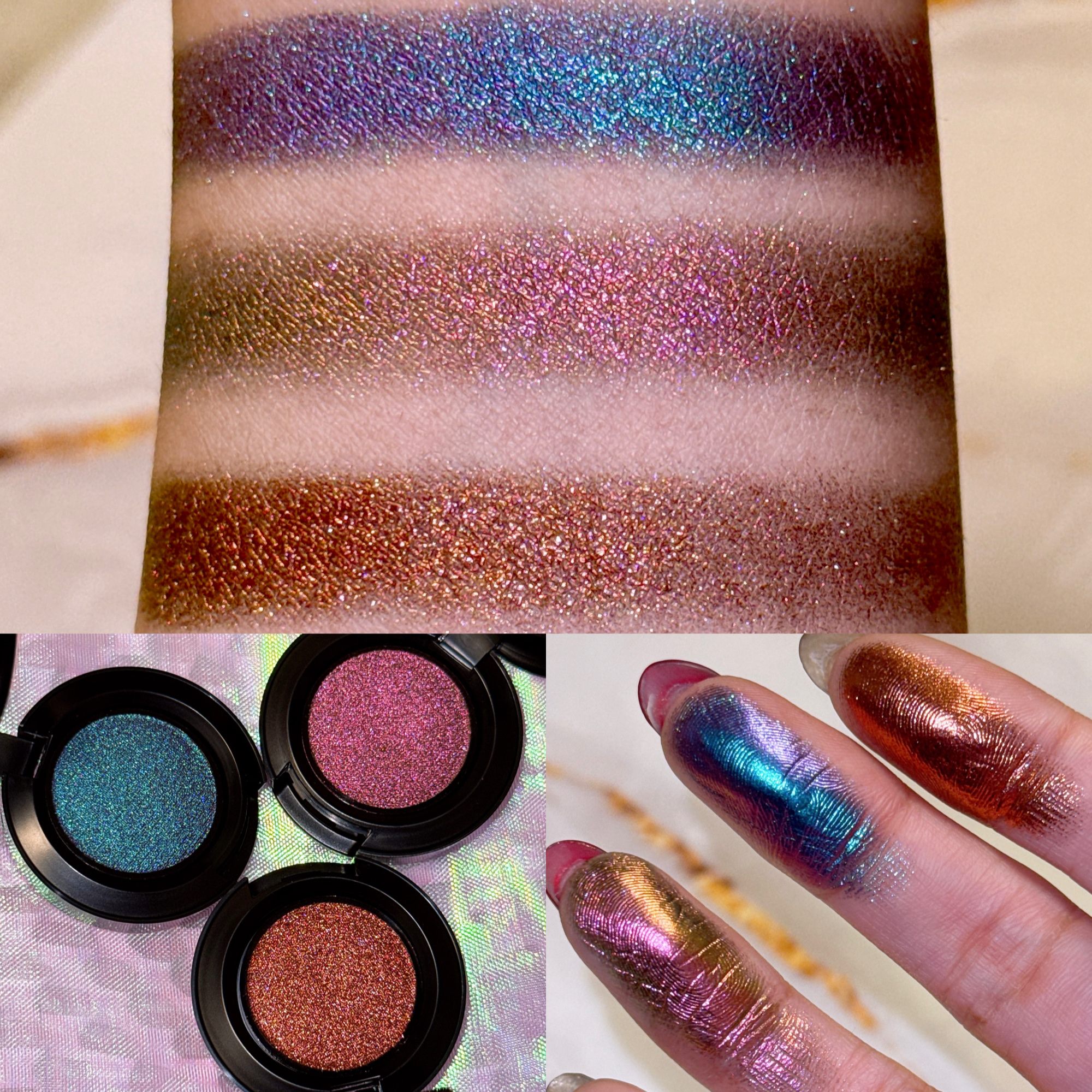 MAC新作‼️新シェード‼️アイシャドウシェードシフトクローム✨✨発売されたばかりのアイシャドウ、ちゃんとゲットしてきました❤️もう、、ヤバすぎる😂✨✨あまりにも美しい偏光、、すごい、さすがMAC👏🏻💕💕💕今回は新シェードとして3色が発売され...