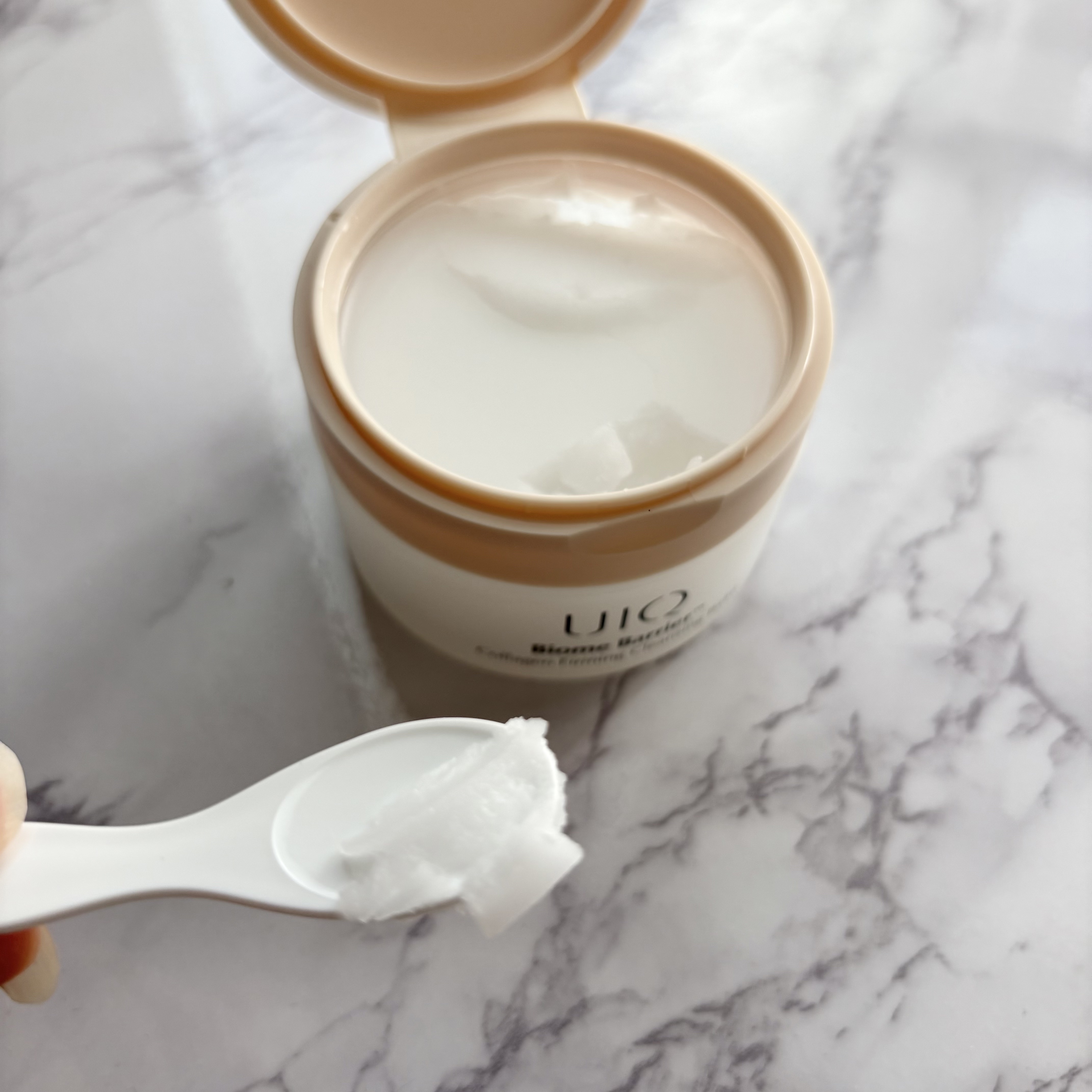 UIQユイクさんのバイオームバリアコラーゲンファーミングクレンジングバームBiomeBarrierCollagenFirmingCleansingBalm使ってみました。シャーベットタイプ。なめらかに溶けて肌の老廃物を優しく洗浄。毛穴もすっき...