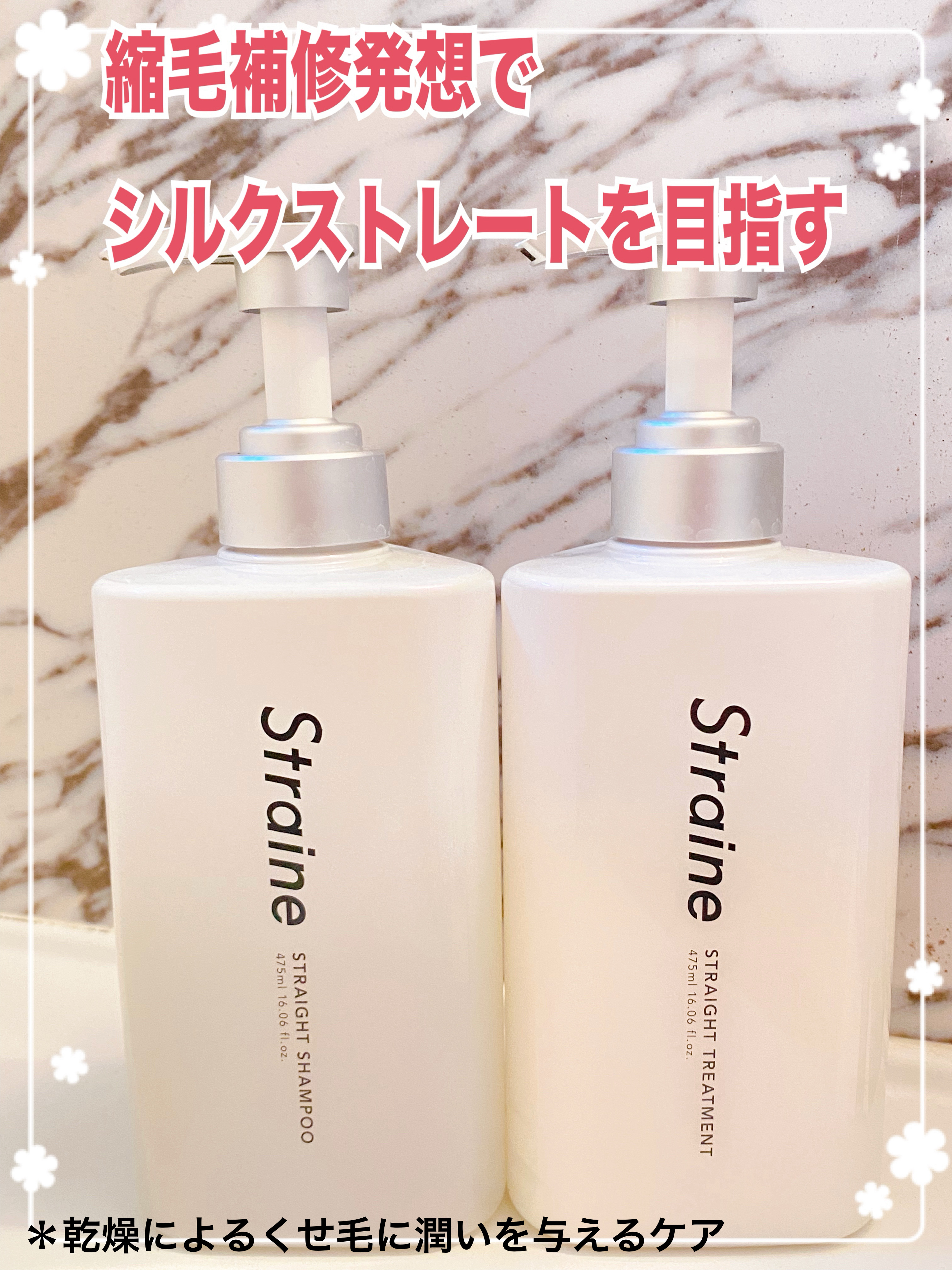 サロン品質の仕上がりを自宅で再現Straineストレートシャンプー/ストレートトリートメント縮毛補修発想から誕生した新ヘアケアブラド“Straine(ストレイン)”✨9種の必須アミノ酸と7種のケラチンが髪内部の結合を強化し、シルクのようなスト...