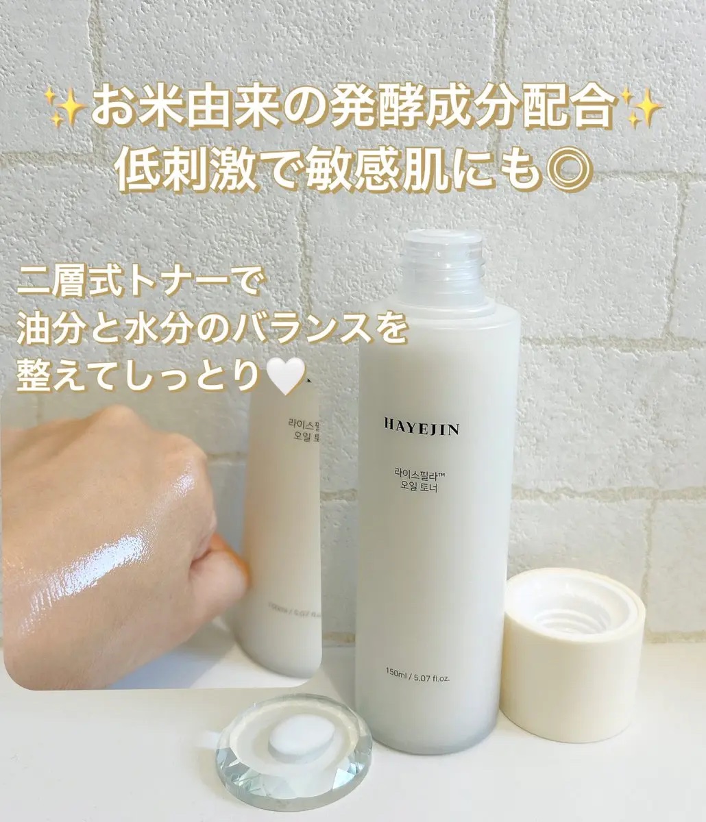 (HAYEJIN様よりご提供いただきました❤︎)HAYEJINハイェジンライスピラーオイルトナー150ml/Qoo10価格¥2,490(税込)韓国🇰🇷米ぬかスキンケア🌟ミネラルが豊富な海風に当たって育った、韓国扶安(プアン)郡の地域特産品「プ...