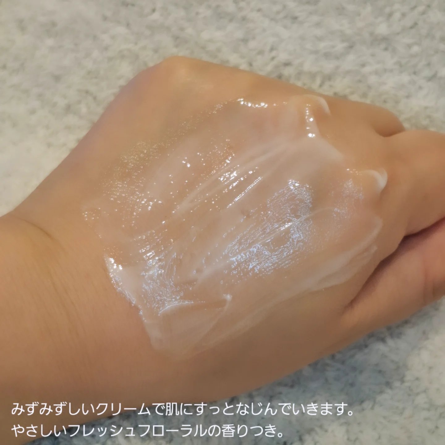 伸びよいジェルクリームで、肌なじみも良いです👌 個人差があると思いますが、塗ってしばらくするとお肌がスースーしてきます🎵 暑くなるこれからの季節に使っていきたいアイテムだと感じました✨